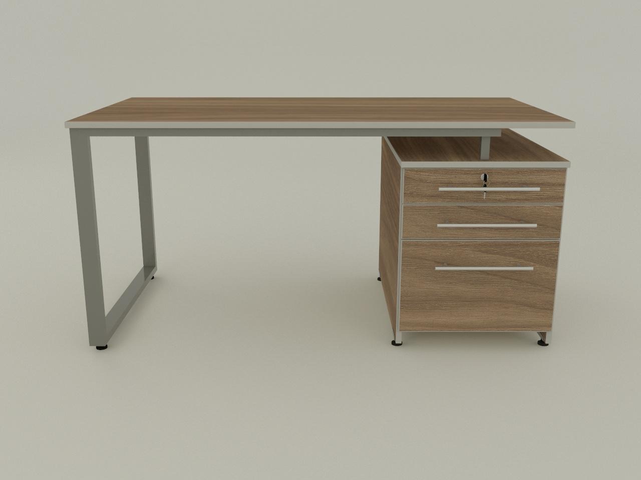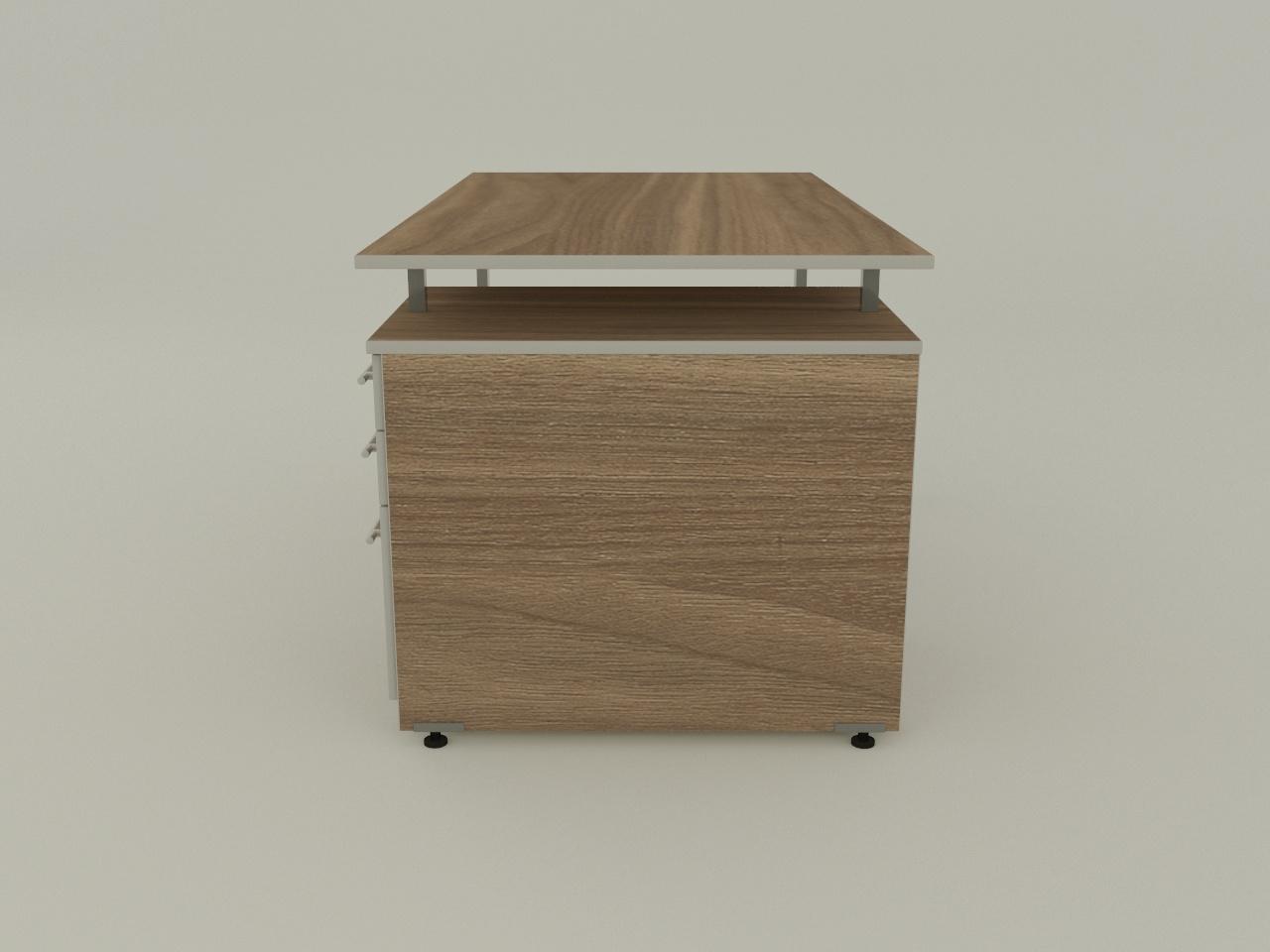 fabricado con estructura metalica, compuesta por 1 soporte cuadrado de tubular rectangular de 2 plg x 1 plg cal 18 con niveladores metalicos para ajuste de altura, incluye 2 largueros de tubo cuadrado de 1 plg cal 18, con orejas para fijacion de cubierta de lamina cal 14. todo con acabado en pintura al horno. incluye 2 tacos para fijacion de pedestal. esta estructura se monta en una lado sobre pedestal. cuenta con cubierta de 28 mm de espesor, fabricada en madera industrializada melaminizada por termofusion y cantos de pvc termoadheridos de 2 mm de espesor con aristas perfiladas. incluye pedestal de 2 gavetas utileras y gaveta archivadora tamaño oficio status, con cubierta de 19 mm de espesor, 2 soportes de 19 mm de espesor con niveladores sobre canaleta de lamina para ajuste de altura, entrepaño inferior fijo de 19 mm de espesor, tapa frontal de 16 mm de espesor; armado con herrajes de acero, seguro interno para cierre simultaneo de gavetas, cada gaveta con cuerpo de lamina cal 22 con acabado en pintura al horno, 2 soportes laterales, 1 jgo de correderas de extension completa, frente de gaveta en 16 mm de espesor, jaladera mod. tiger de 30 cm.