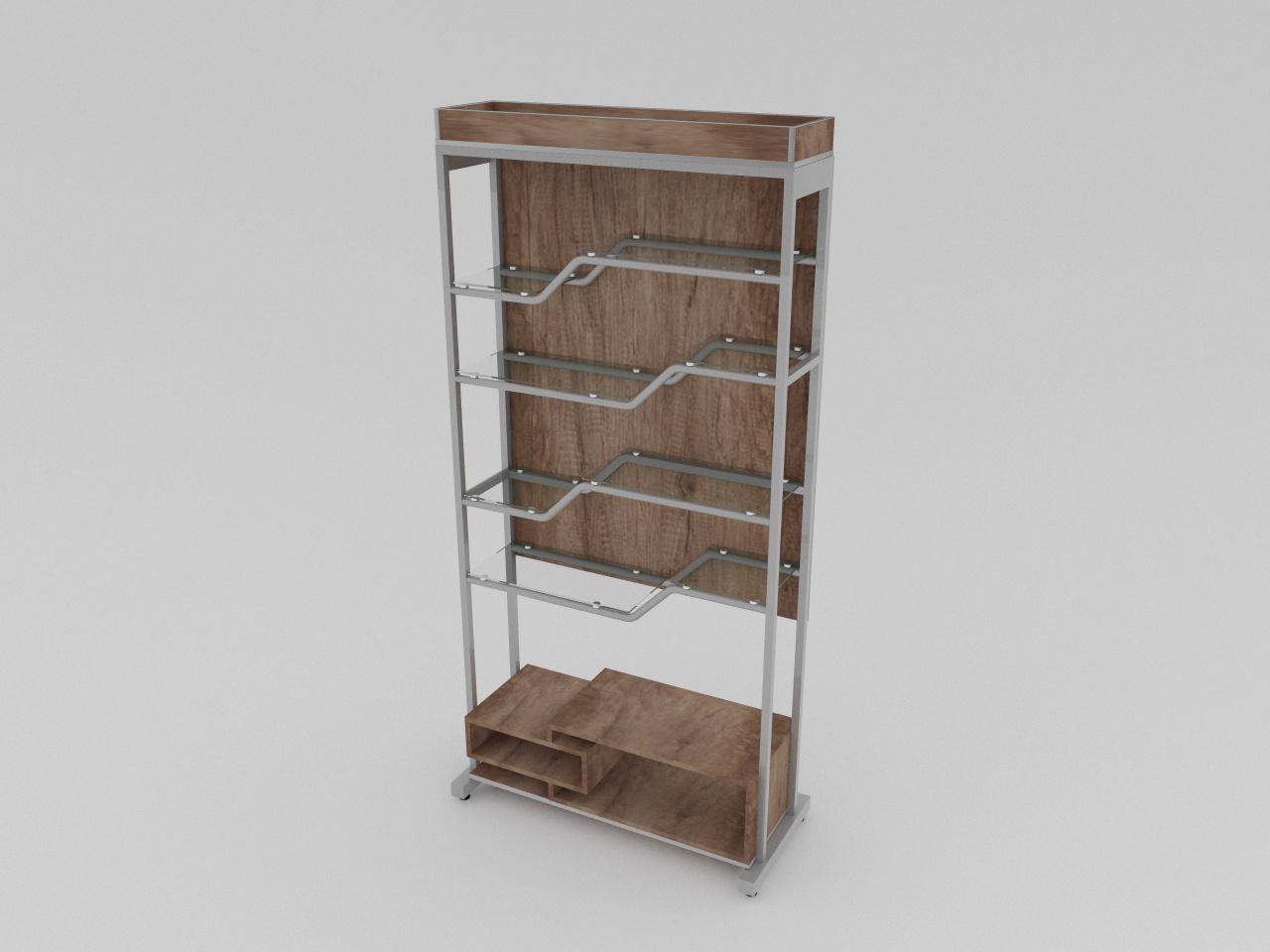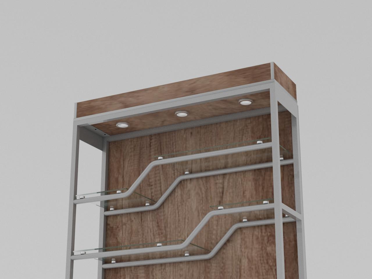 fabricado con estructura metalica de tubo cuadrado de 2 plg y 1 plg cal. 18, armable, formado por 2 arcos con uniones de 45 grados, 4 areas de entrepaños con refuerzos, estos en tubo cuadrado de 1 plg, base de estructura de tubo cuadrado de 2 plg cal. 18, con niveladores para ajuste de altura, cada area de entrepaños cuenta con 4 tapones de aluminio redondo de 1 plg de 1/2 plg de espesor, todo con acabado en pintura al horno. cuenta con 8 cubiertas de cristal claro de 6 mm de espesor con cantos pulidos brillantes, en diferentes medidas, sujetados a regatones de aluminio mediante adhesivo a base de luz ultravioleta, cuenta con una base superior con 3 perforaciones para colocar luminaria redonda (incluye cableado, no incluye instalacion a corriente electrica), se incluye area de exhibicion inferior mediante 2 cubos, estos fabriccado en madera industrializada melaminizada por termofusion y cantos vinilizados, uniones mediante tornillos (visibles), se une a estructura mediante 8 tornillos conectores y 8 tuercas de acero remachadas a estructura. se incluyen 4 tapas traseras en 9 mm de espesor (mdf o triplay) forrada en ambas caras por laminado plastico.
