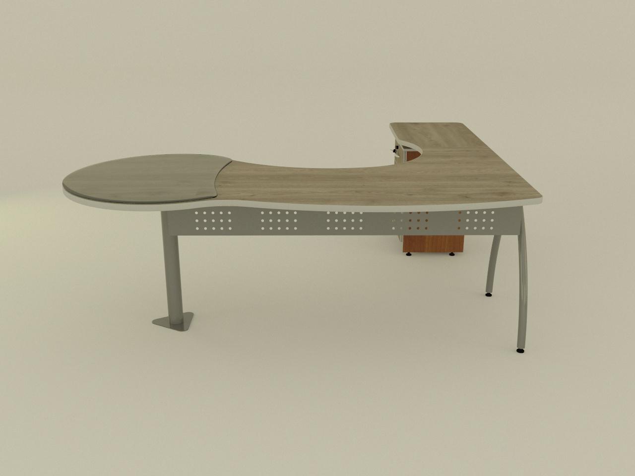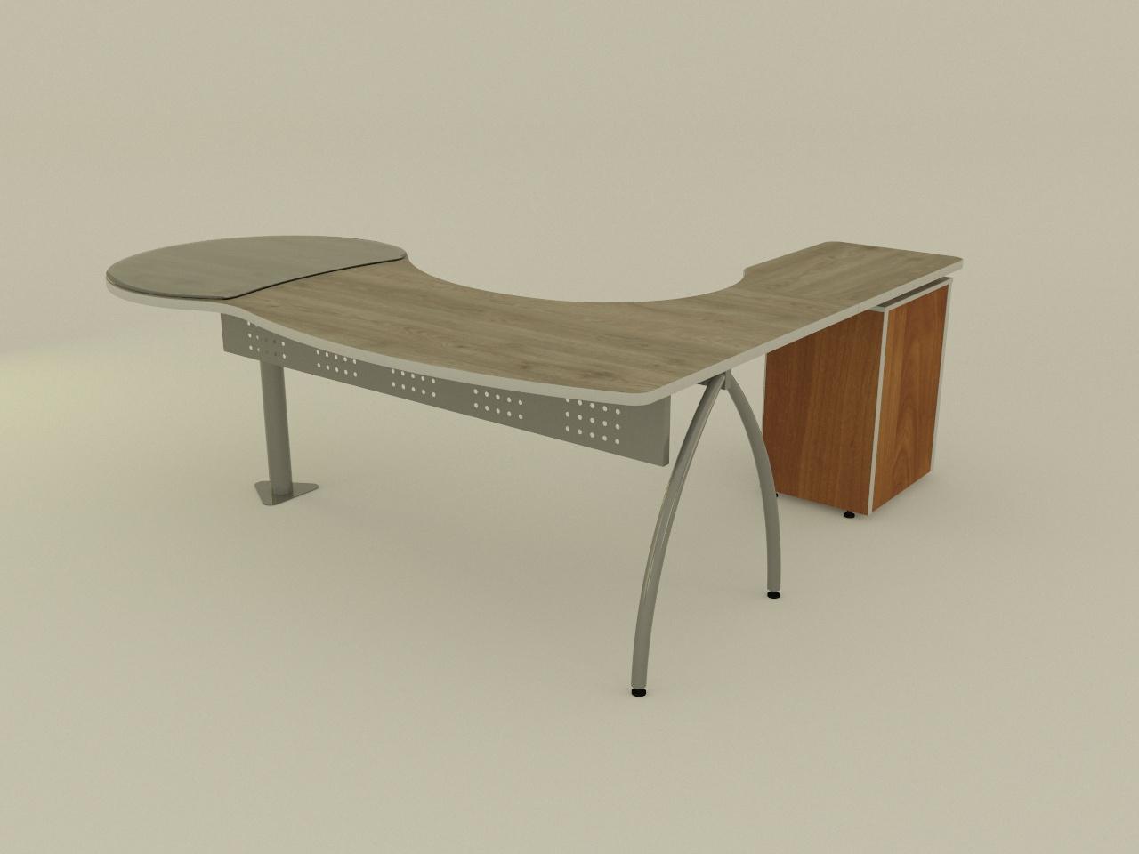 modulo ejecutivo modelo metal wood con dimensiones generales: largo 200 cm, ancho 200 cm y altura 75 cm.cubierta ejecutiva de 28mm de espesor formada por dos piezas que forman una escuadra con cortes semicurvos fabricadas con madera industrializada, melaminizada y vinilizada en los cantos por termofusion con pvc vinilico de 2mm de espesor adherible a alta temperatura con aristas boleadas con perfil cuarto bocel. soportes patas metalicas en tubo redondo de 1 1/2 plg cal. 18 rolado y doblado, tubo redondo de 3 plg cal. 18 con base placa cal.12, reforzado con lamina negra acerada cal.16 con perforaciones decorativas, faldon frontal en lamina negra acerada cal. 22 con perforaciones decorativas, armados, soldados con microalambre y acabado con pintura en polvo epoxi polyester al horno, previa limpieza, proceso de fosfatizacion y sellado organico. incluye soporte pedestal con 1 cajon archivador status tamaño oficio con sistema de archivo suspendido y 2 cajones utileros papeleros status, ambos sujetados al cuerpo del pedestal por medio de correderas de extension completa con sistema de embalinado, tapa trasera, soportes laterales y frentes de cajones son fabricados con madera industrializada, melaminizada y vinilizada en los cantos por termofusion con pvc vinilico de 2mm de espesor adherible a alta temperatura con aristas boleadas con perfil cuarto bocel. incluye cubierta de cristal transparente 06mm de espesor sobrepuesta en cubierta 28mm redonda de 90 cm de diametro con cantos pulidos brillantes y aristas boleadas con perfil cuarto bocel. el modulo ejecutivo consta de niveladores a piso para regular altura.