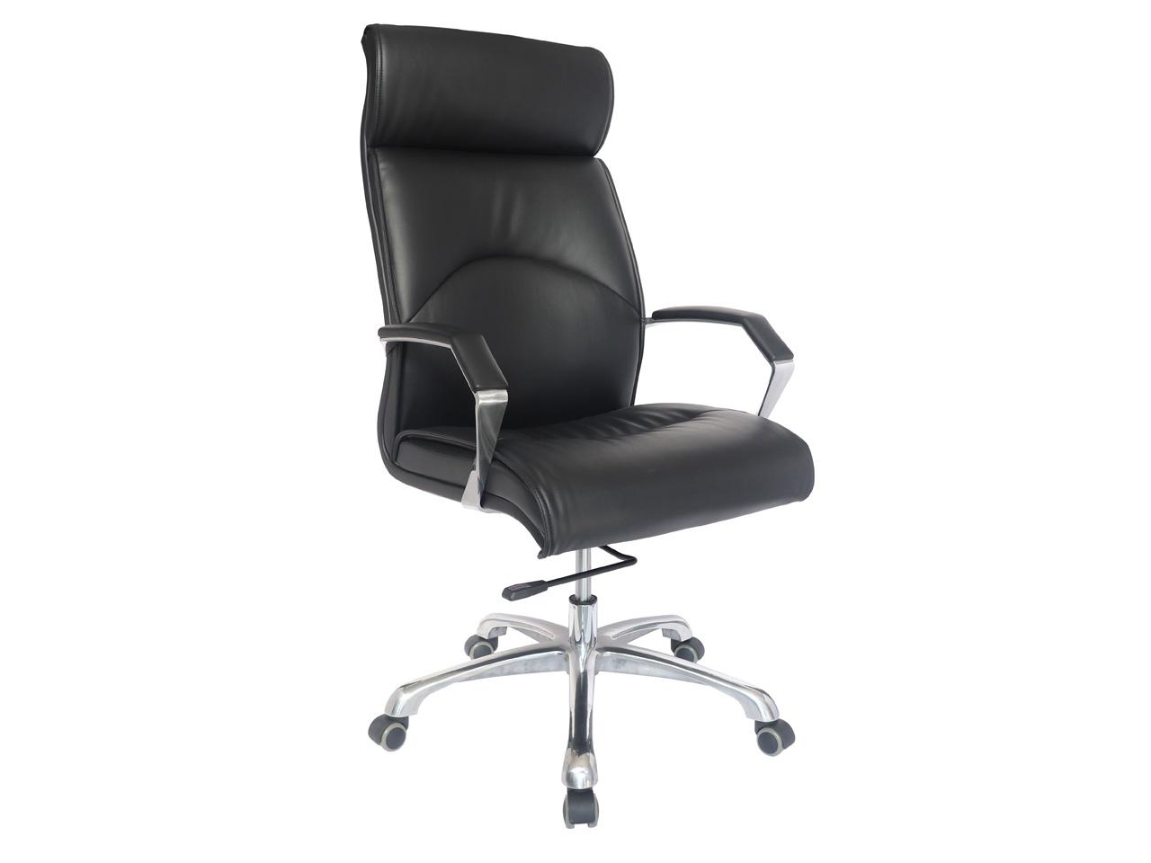 base de 26 plg de fundicion en aluminio nervado con rodajas de 50 mm de diametro en sambladas a presion, color negro piston neumatico de gas nitrogeno, ensamble conico a presion en la base del asiento y en la base del sillon, mecanismo en acero tipo artuculado de rodilla, con palanca de accionamiento y bloqueo del piston neumatico reclinable con regulador de tension de la inclinacion y palanca de bloqueo. respaldo alto, brazos de aluminio fundido y pulidos con terminado natural, acojinados y tapizados en soft revolving leather color negro. asiento respaldo de mader de triplay preformado de 8mm, asiento acojinado con hule espuma laminada y dimensionada de 70 mm de espesor de alta densidad 50 kg/m3. respaldo acojinado con hule espuma laminada y dimensionada de 80 mm de espesor de alta densidad. tapizado en soft revolving leather color negro.