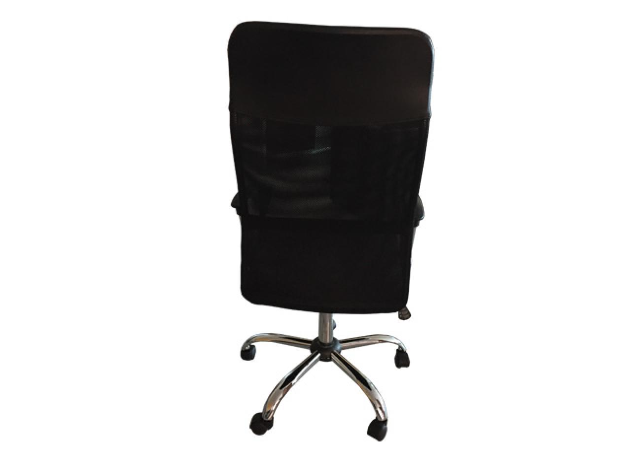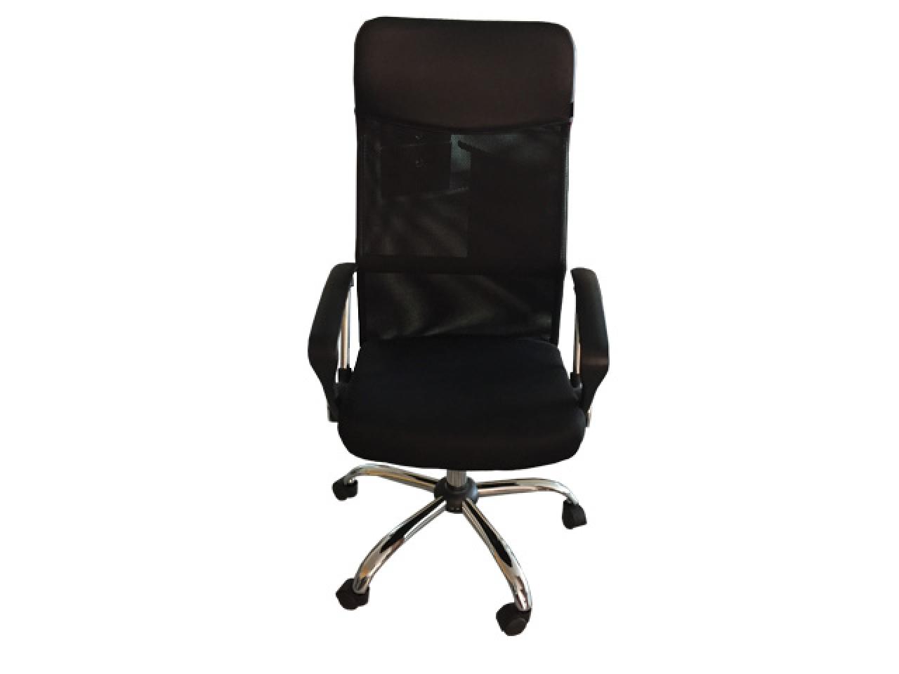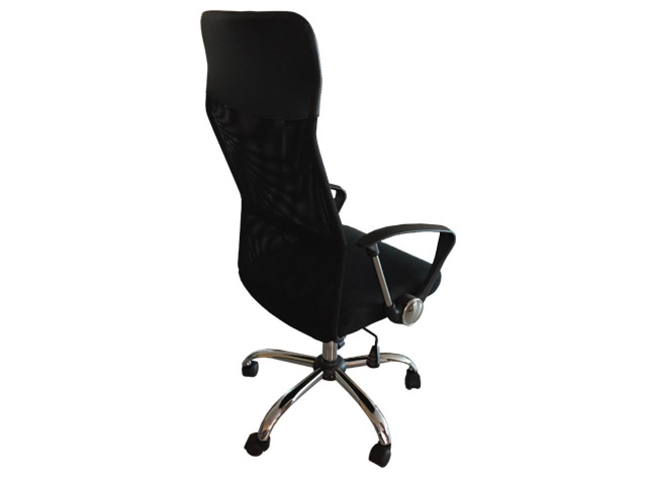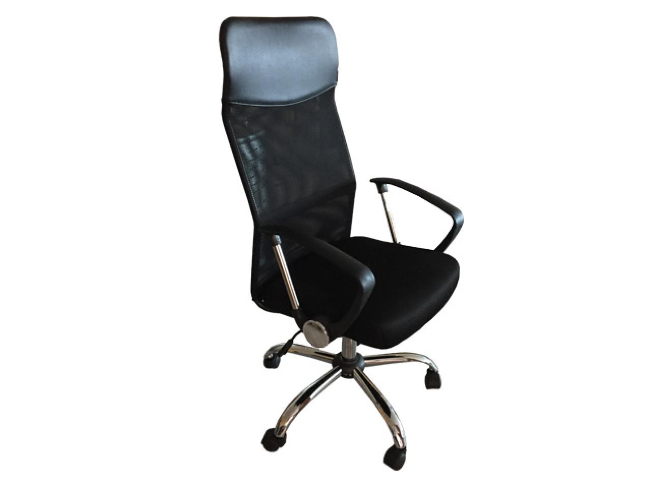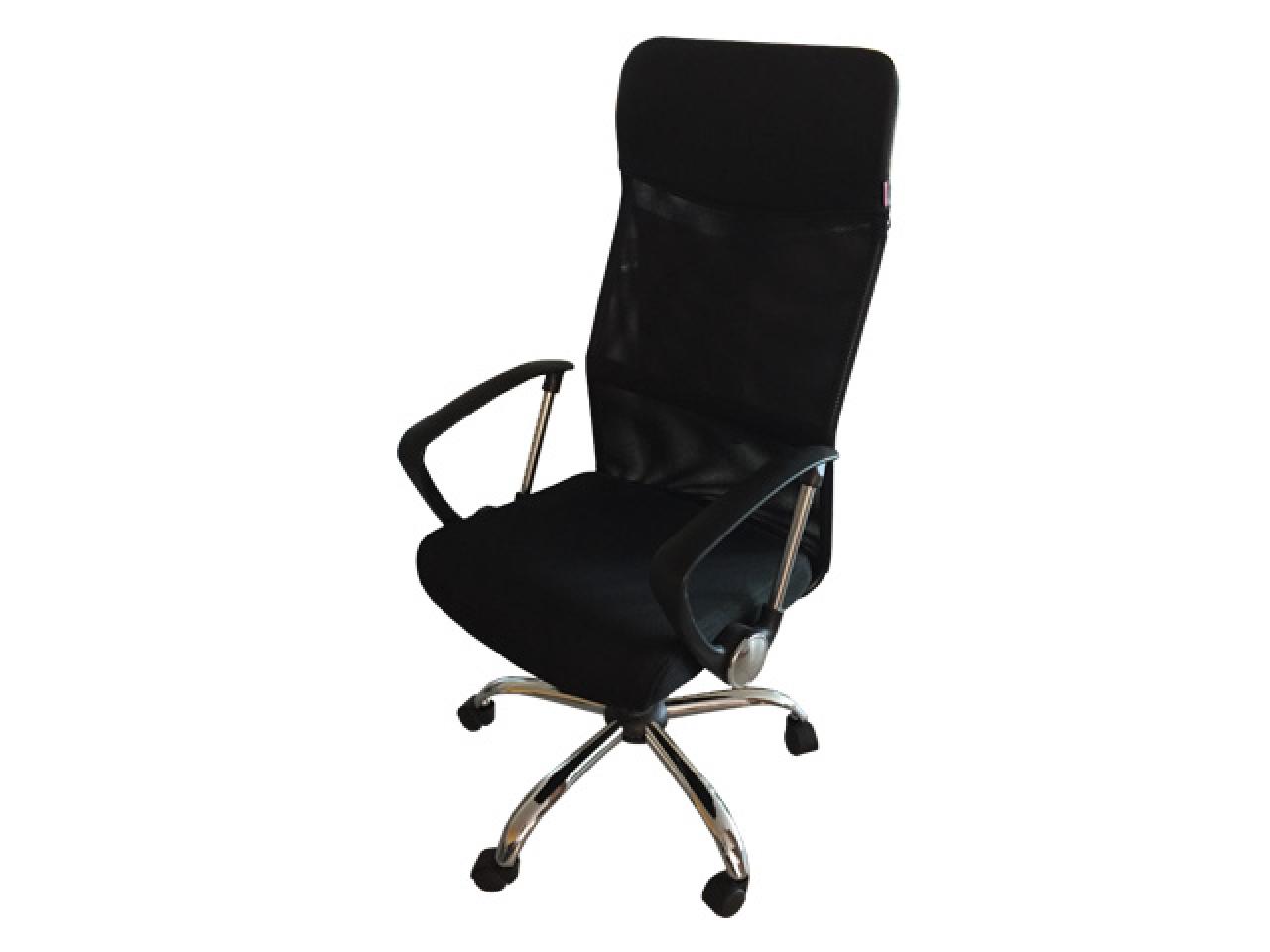 sillon ejecutivo formado por base de acero cromada de 26 plg de 5 apoyos con 5 rodajas plasticas de polipropileno. asiento y respaldo alto, hormada ergonomicamente acojinada con hule espuma de 5 cms de baja densidad y tapizado en tecnomalla estructura metalica de acero cromado, reforzada y soldada. piston ejecutivo neumatico para regular altura.