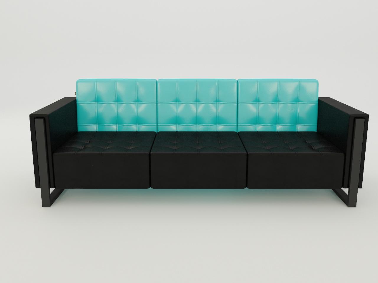 sofa de 3 plazas, que consta de 2 coderas, 3 respaldos y 3 sentaderas. todo acojinado con hule espuma y forrado en vinil. bases interiores de madera de pino de 20 mm, herrajes de acero para armado. base trineo de tubular rectangular de 2 plg x 1 plg cal 18, con acabado en pintura al horno. tapizado en vinil.