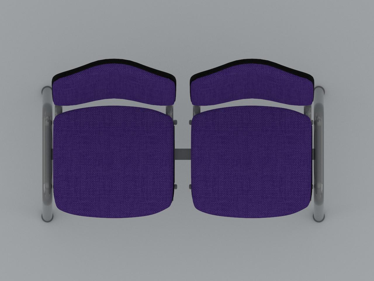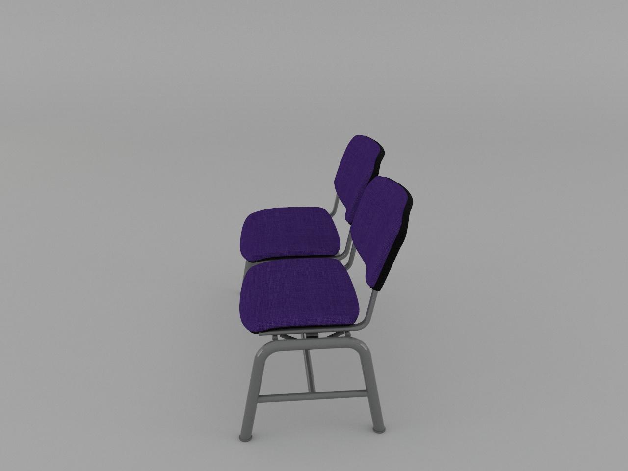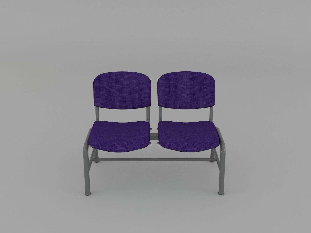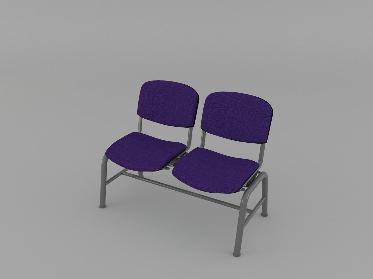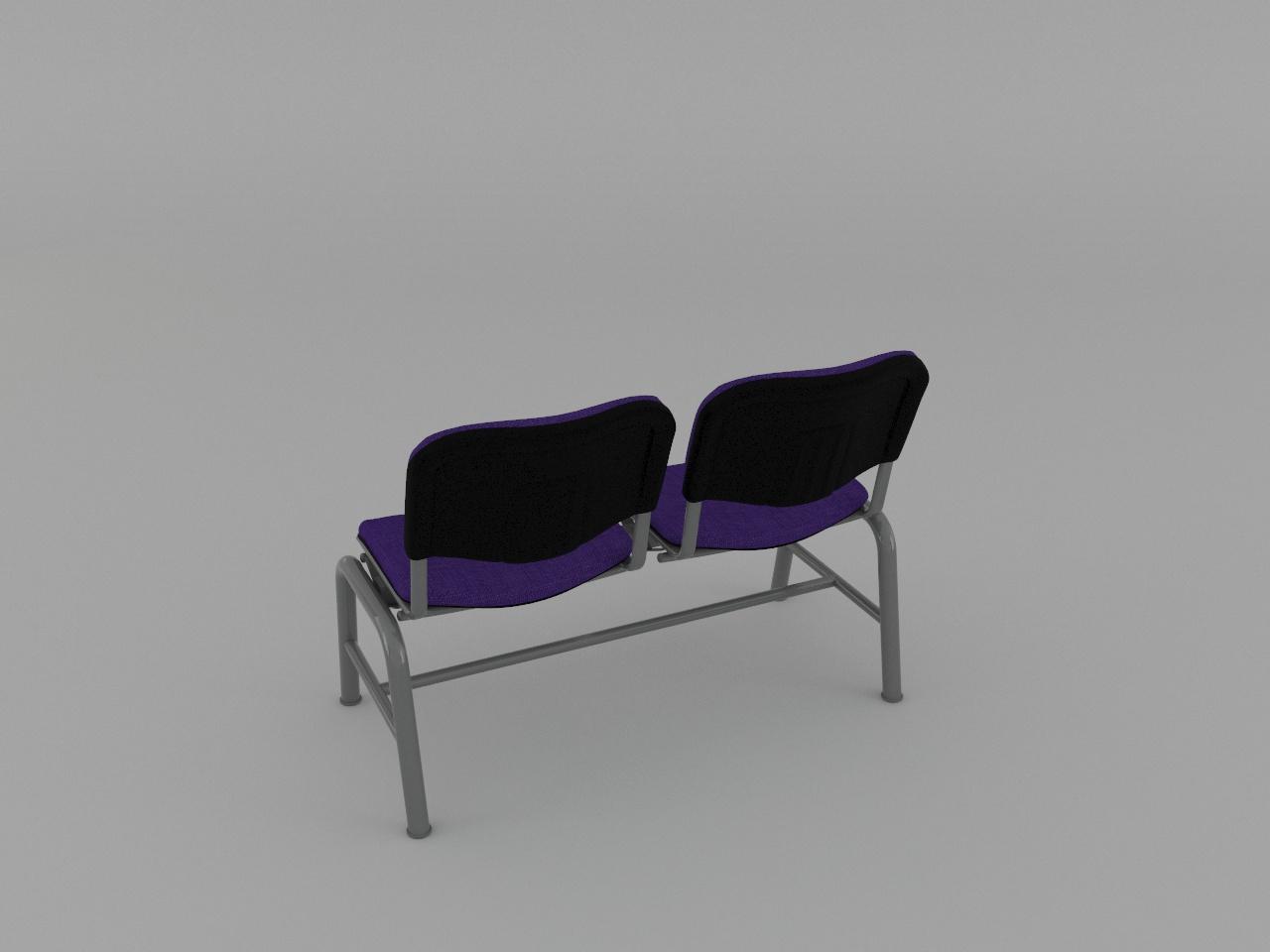 estructura metalica base en acero tubular redondo de 1 1/2 plg cal 18 con rolado y doblez, refuerzo en travesaño larguero de tubo cuadrado reforzado de 2 plg cal 14, travesaño inferior de tubo redondo de 1 plg cal 18, asiento y respaldo de base metalica de tubular ovalado de 1 1/8 plg x 5/8 plg cal 18, soldados con microalambre y acabado en pintura al horno. 2 juegos de asiento y respaldo de polipropileno en color negro, acojinados con hule espuma con densidad de 44 kg/m3, tapizado en tela 100% fibra acrilica.