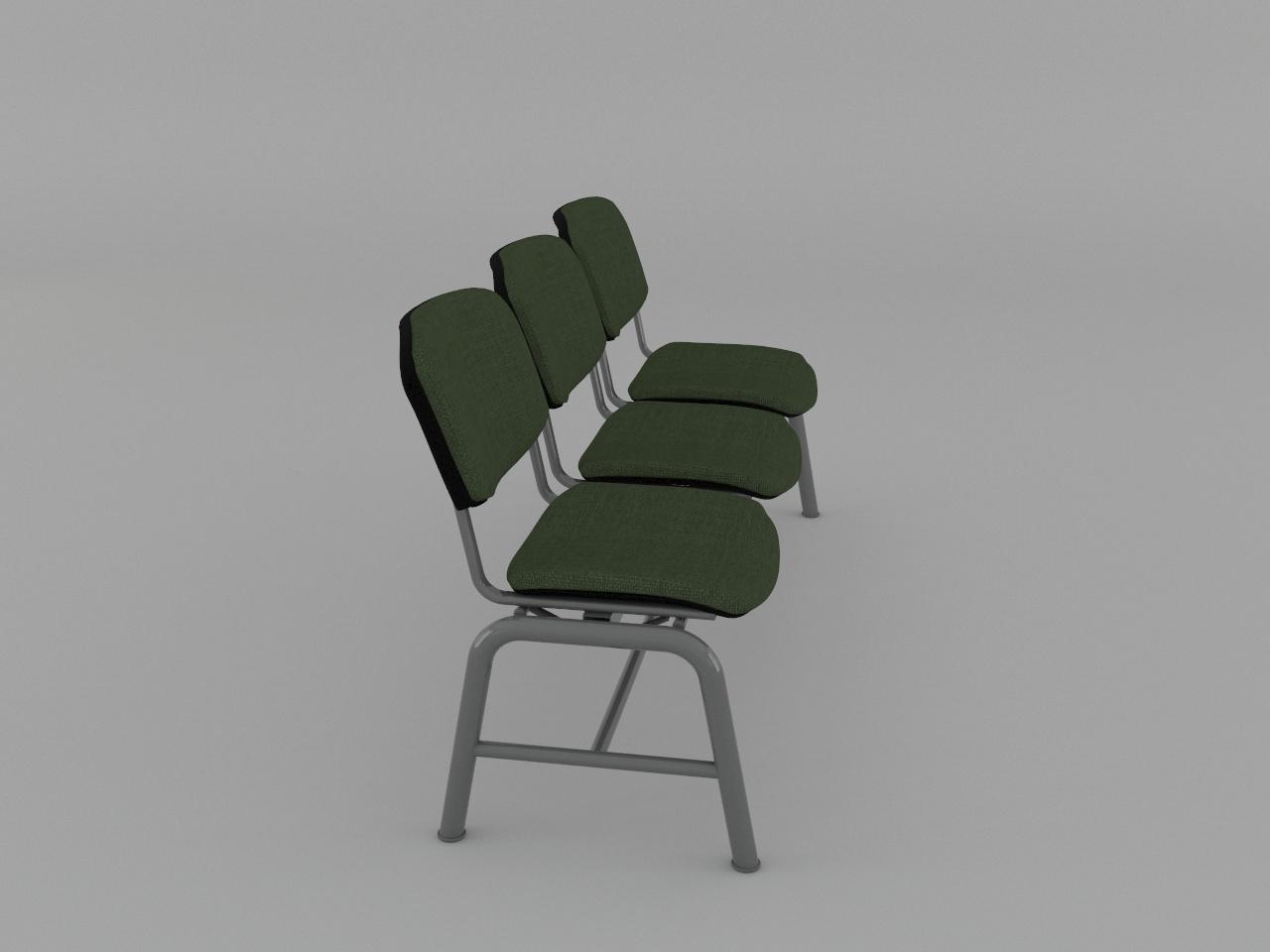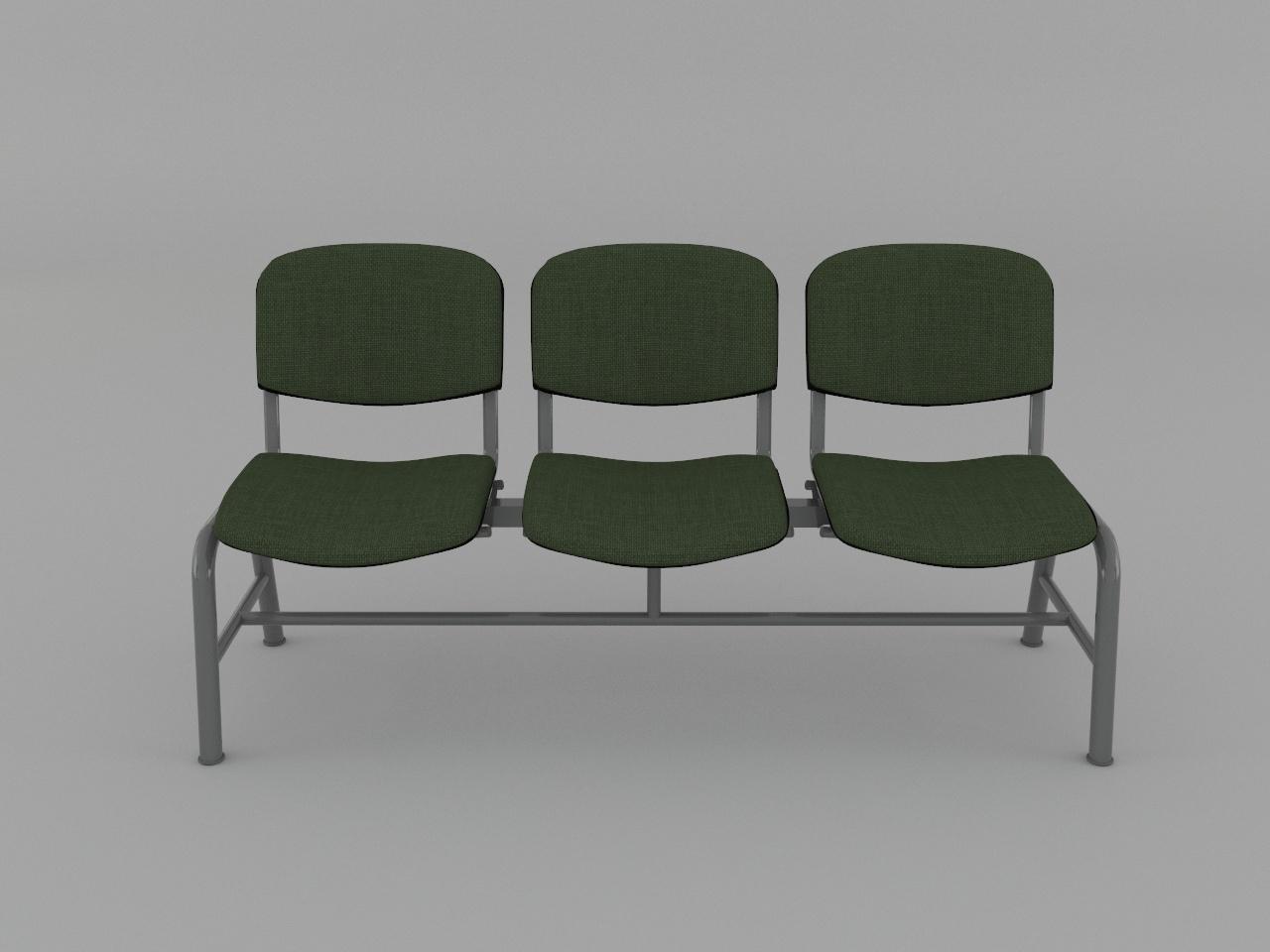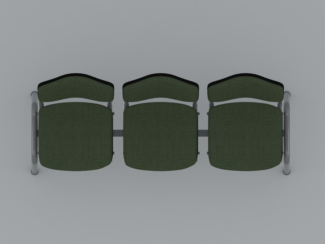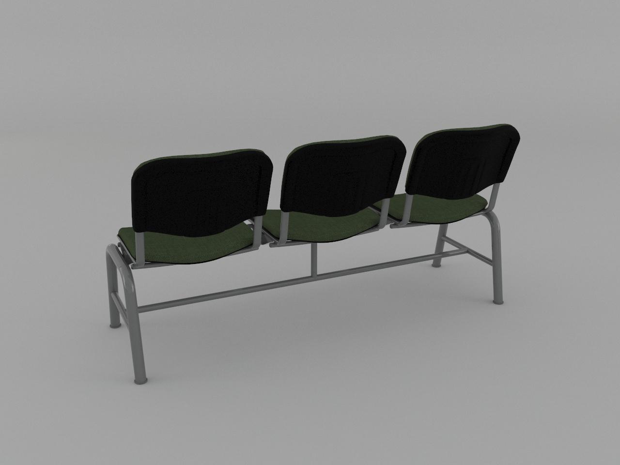 estructura metalica base en acero tubular redondo de 1 1/2 plg cal 18 con rolado y doblez, refuerzo en travesaño larguero de tubo cuadrado reforzado de 2 plg cal 14, travesaño inferior de tubo redondo de 1 plg cal 18, asiento y respaldo de base metalica de tubular ovalado de 1 1/8 plg x 5/8 plg cal 18, soldados con microalambre y acabado en pintura al horno. 3 juegos de asiento y respaldo de polipropileno en color negro, acojinados con hule espuma con densidad de 44 kg/m3, tapizado en tela 100% fibra acrilica.
