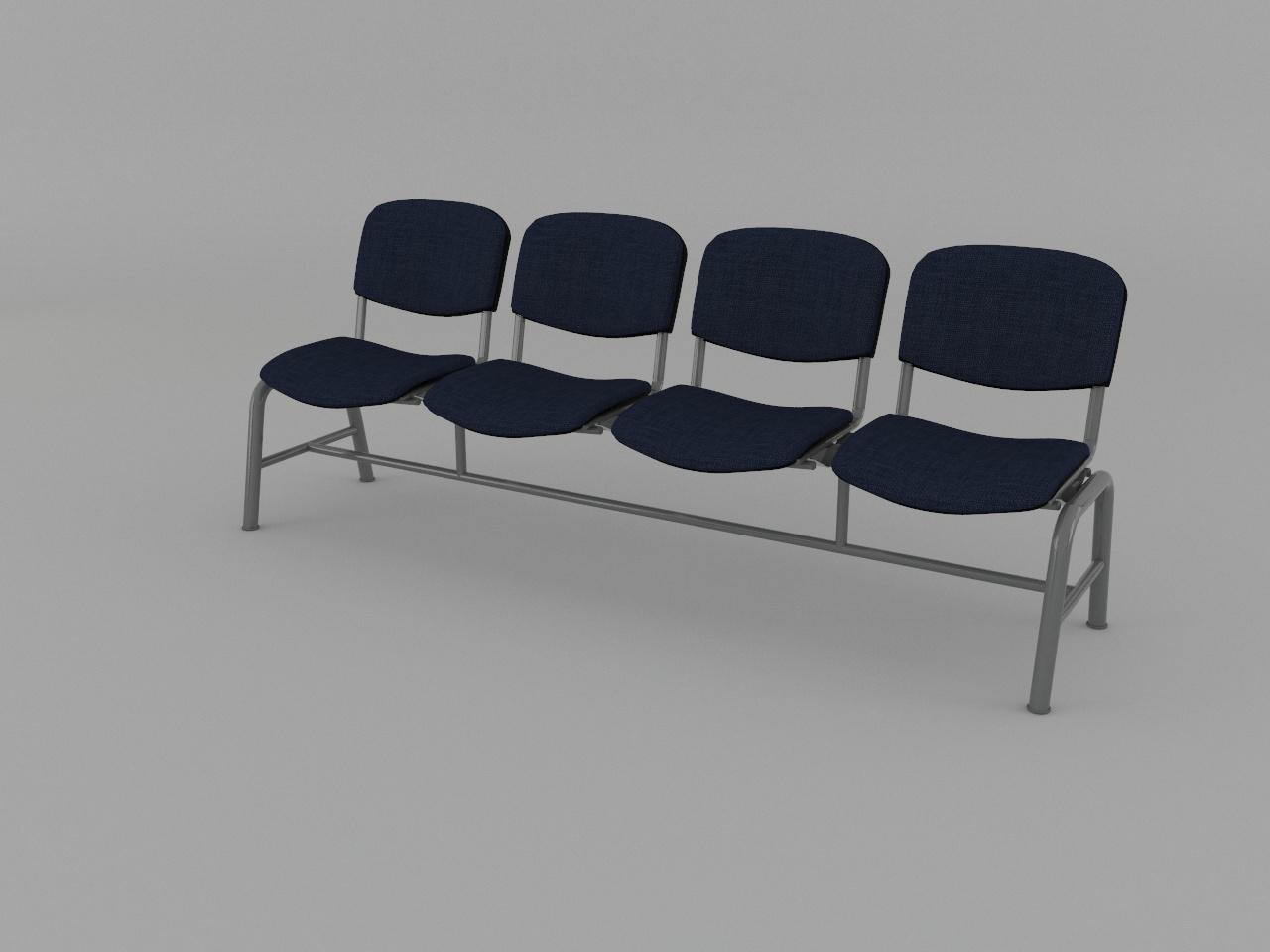 estructura metalica base en acero tubular redondo de 1 1/2 plg cal 18 con rolado y doblez, refuerzo en travesaño larguero de tubo cuadrado reforzado de 2 plg cal 14, travesaño inferior de tubo redondo de 1 plg cal 18, asiento y respaldo de base metalica de tubular ovalado de 1 1/8 plg x 5/8 plg cal 18, soldados con microalambre y acabado en pintura al horno. 4 juegos de asiento y respaldo de polipropileno en color negro, acojinados con hule espuma con densidad de 44 kg/m3, tapizado en tela 100% fibra acrilica.