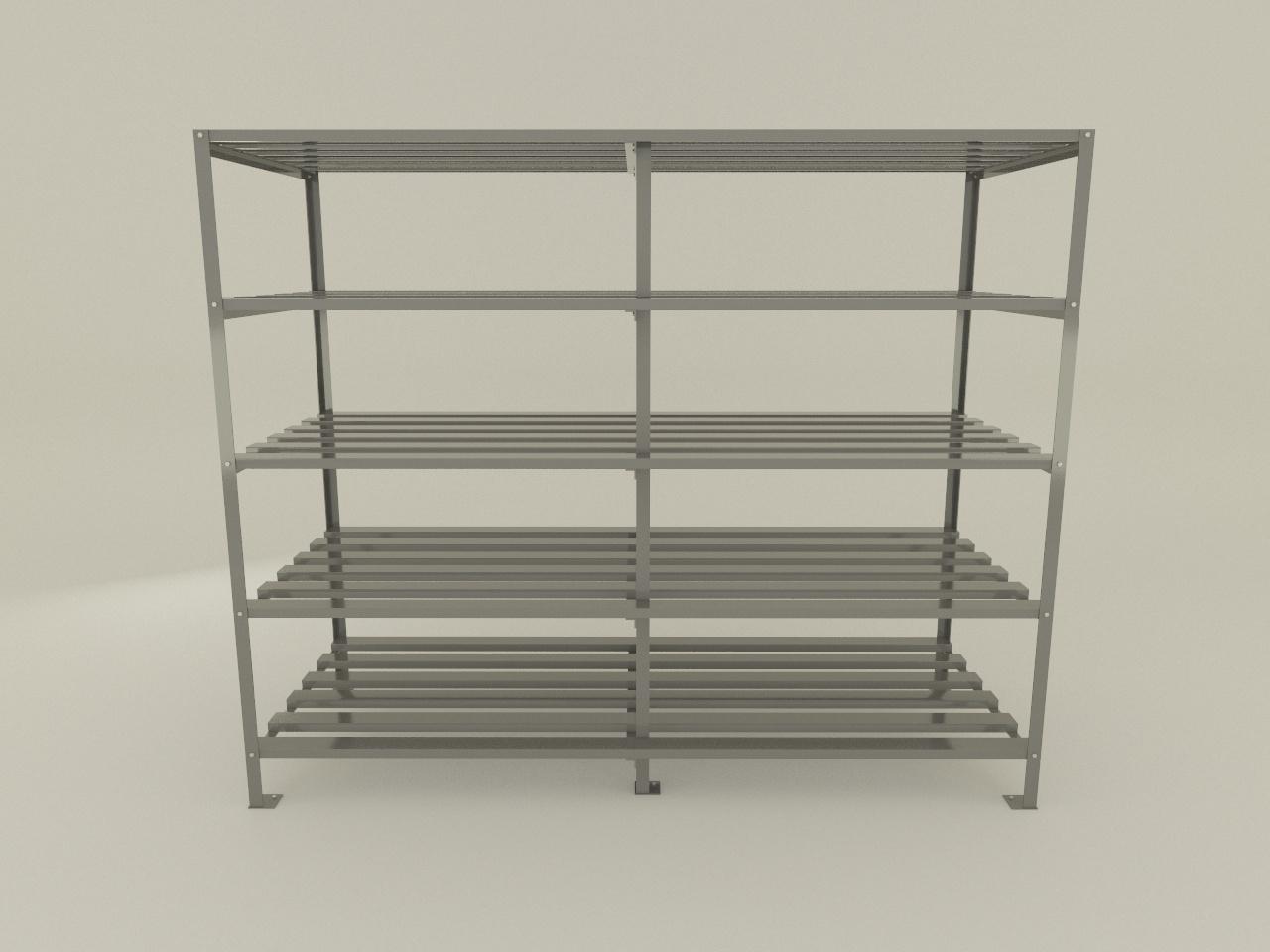 cuenta con 5 niveles o entrepaños, cada uno de 6 montenes de 4 plg x 2 plg cal 16 de 300 cm, con 3 refuerzos de angulo de 2 plg x 1/4 plg para fijar a postes, incluye tornilleria de 3/8 plg y tuercas. acabado en pintura esmaltada estirenada. incluye juego de 6 postes de angulo estructural de 2 plg x 1/4 plg, los postes miden 2.54 mt de largo, con perforaciones y tornillos 3/8 plg para fijacion y placa cal 10 de 15 x 15 cm con taquete y tornillo para anclaje. acabado en pintura al horno.