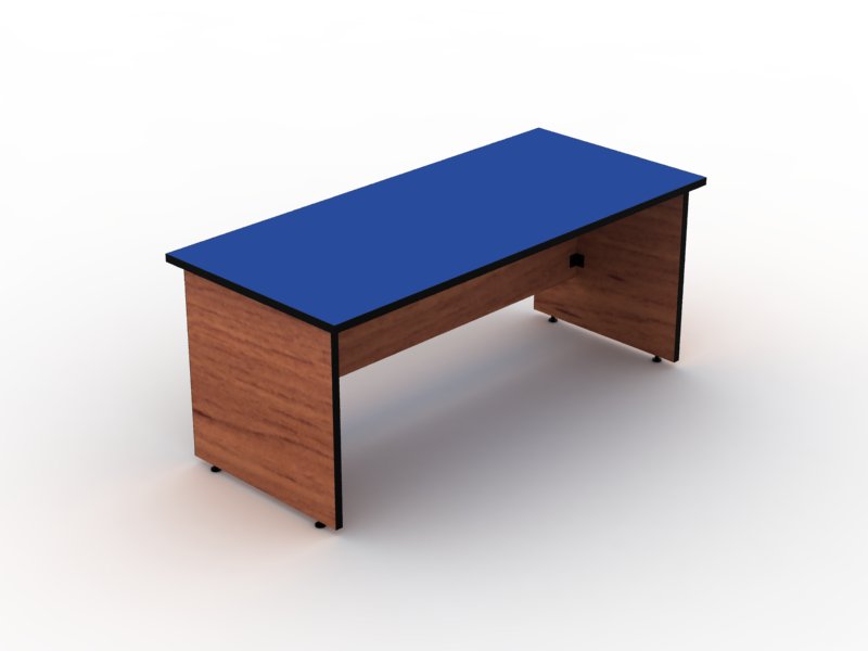 fabricado con madera industrializada melaminizada por termofusion y vinilizada en los cantos, consta de 2 soportes de 28 mm de espesor de 70 x 70 cm con niveladores para ajuste de altura, faldon de 16 mm de 167.9 x 50 cm y cubierta de 28 mm de espesor de 180 x 60 cm, armado con herrajes de angulo.