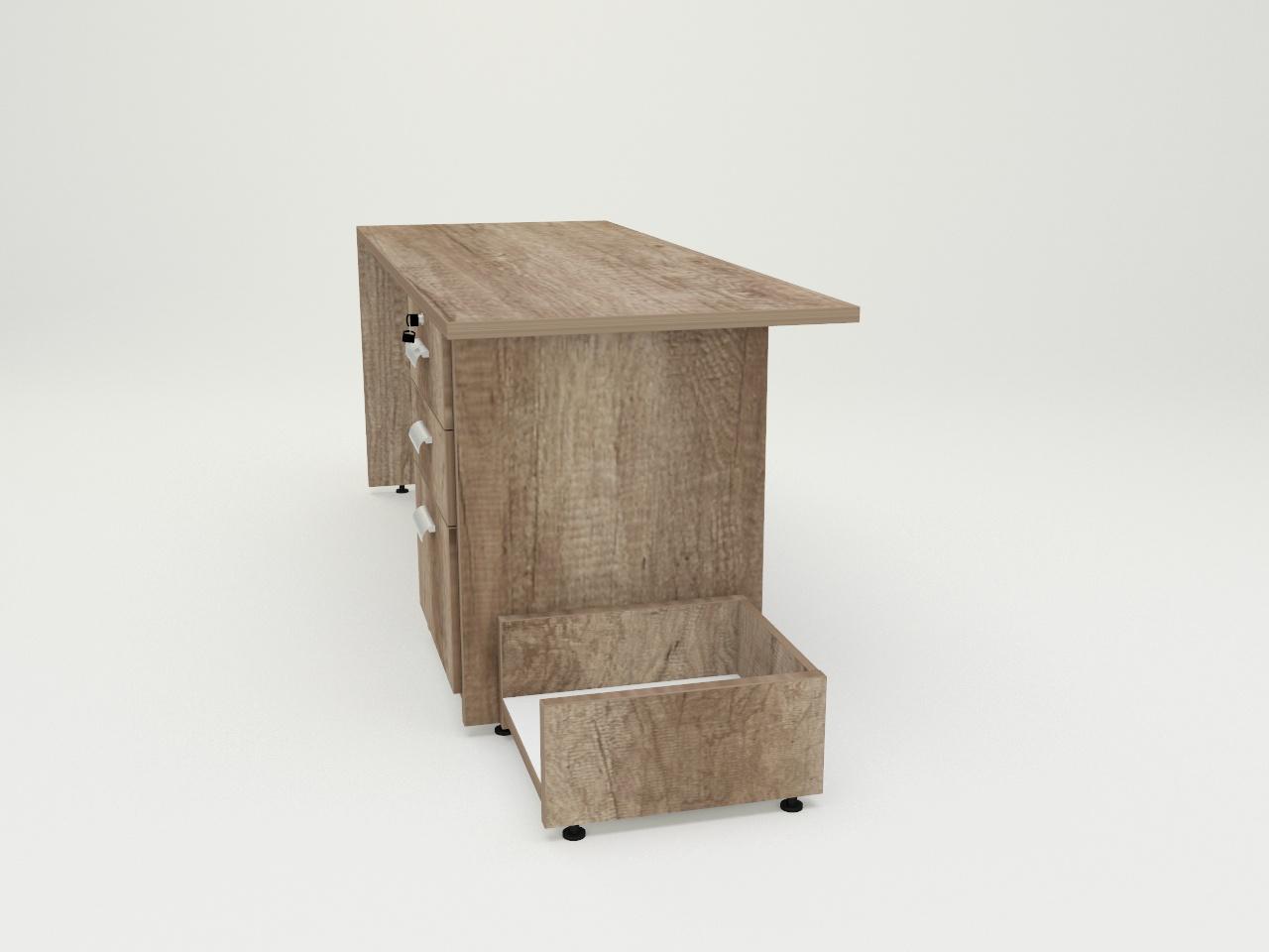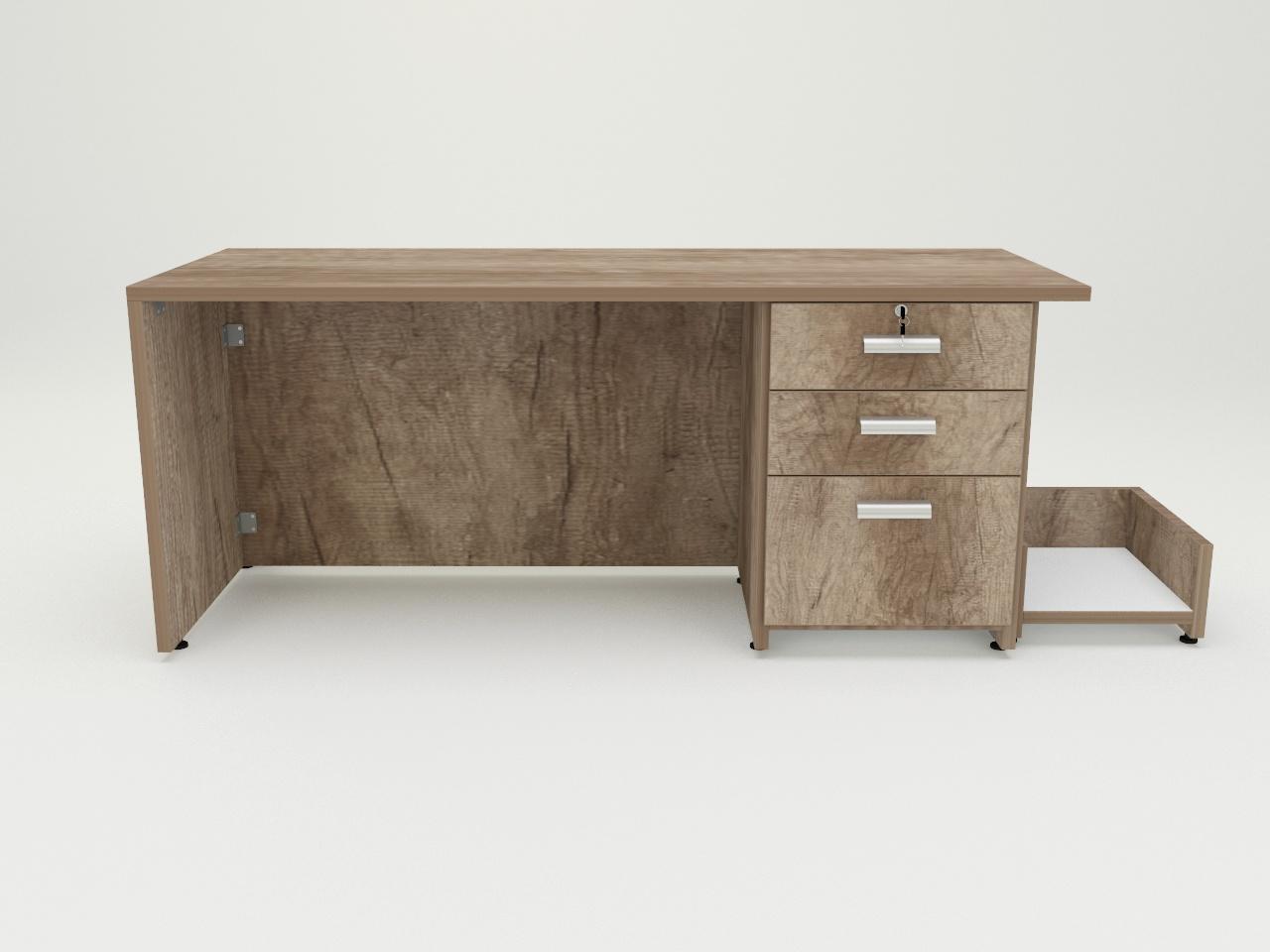 fabricado con madera industrializada melaminizada por termofusion y cantos vinilizados, cuenta con 1 cubierta de 28 mm de espesor, 1 soporte de 28 mm de espesor, y 1 soportes de 28 mm de espesor, faldon frontal de 16 mm de espesor. se incluye cajonera con 2 gavetas utileras y una gaveta archivadora, con cerradura de cierre simultaneo, soportes de 28 mm de espesor, jaladeras acabado en aluminio anonizado, cuerpos de gavetas de lamina cal. 22 con acabado en pintura. se incluye porta cpu status a piso, sin ruedas.