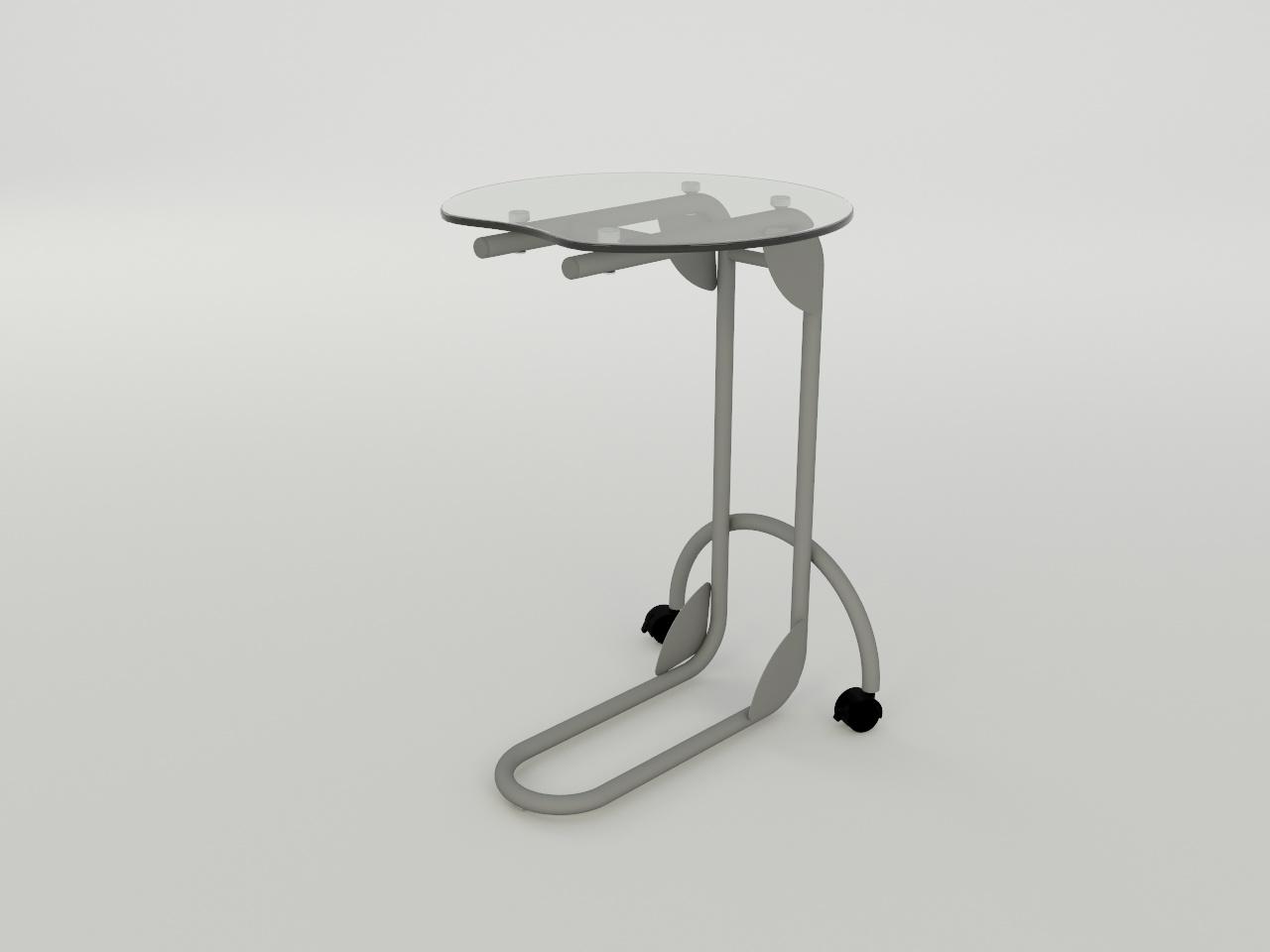 con una estructura metalica de tubo redondo de 1 plg cal. 18, formado por una base en forma c con un arco con ruedas al frente, 2 placas de refuerzo superior de lamina cal. 14 con 4 perforaciones y 4 placas de lamina cal. 20 en los angulos; todo con acabado en pintura al horno previo tratamiento de fosfatizado y sellado organico. incluye 4 herrajes de aluminio de 1 plg de diametro. incluye cubierta de cristal claro de 9 mm de espesor redonda de 50 cm de diametro y cantos pulidos brillantes.
