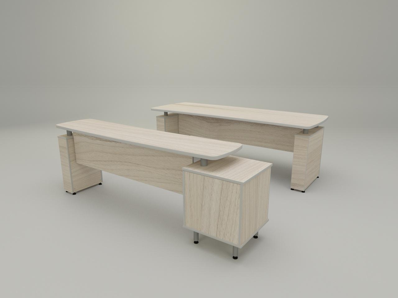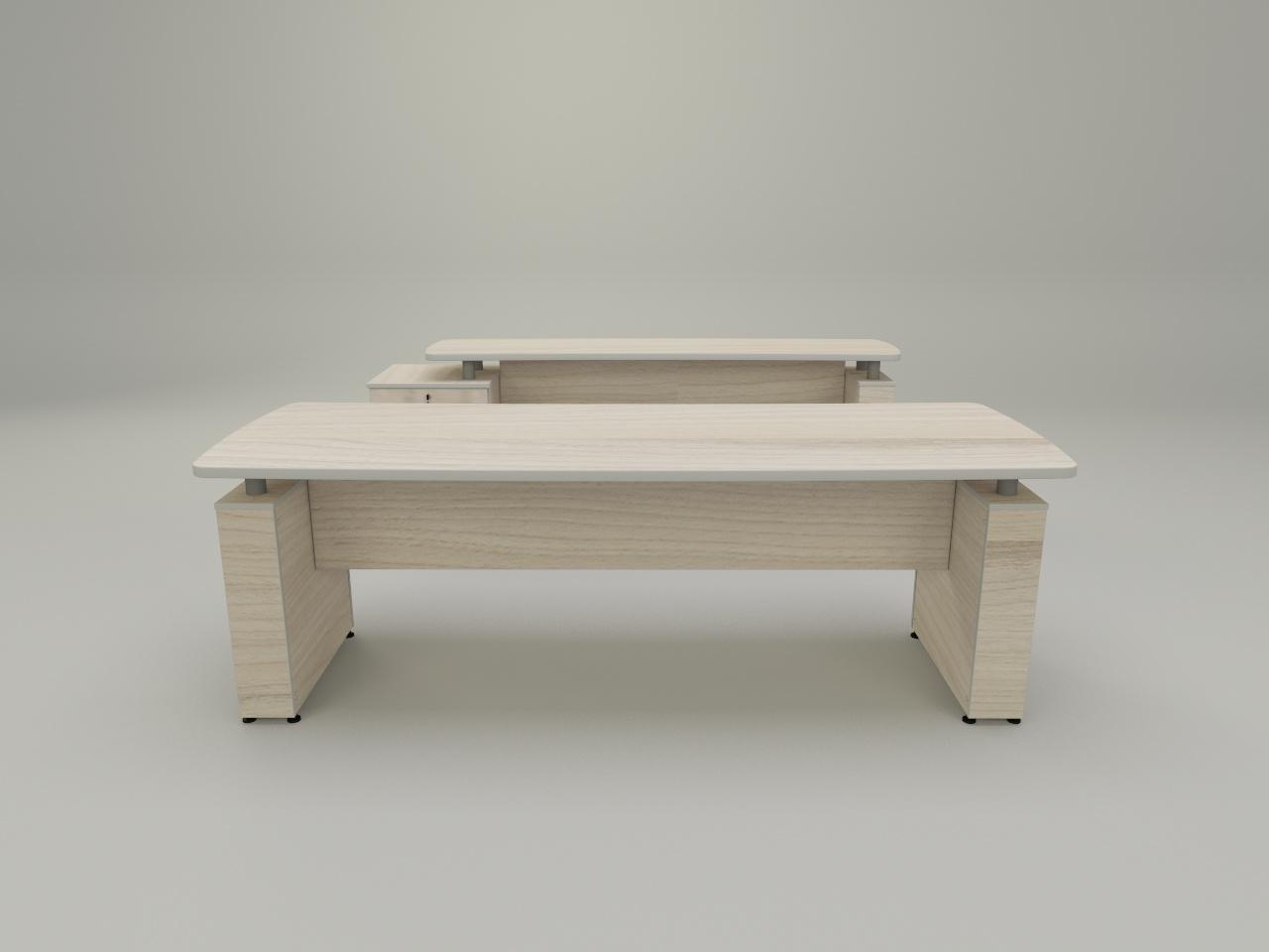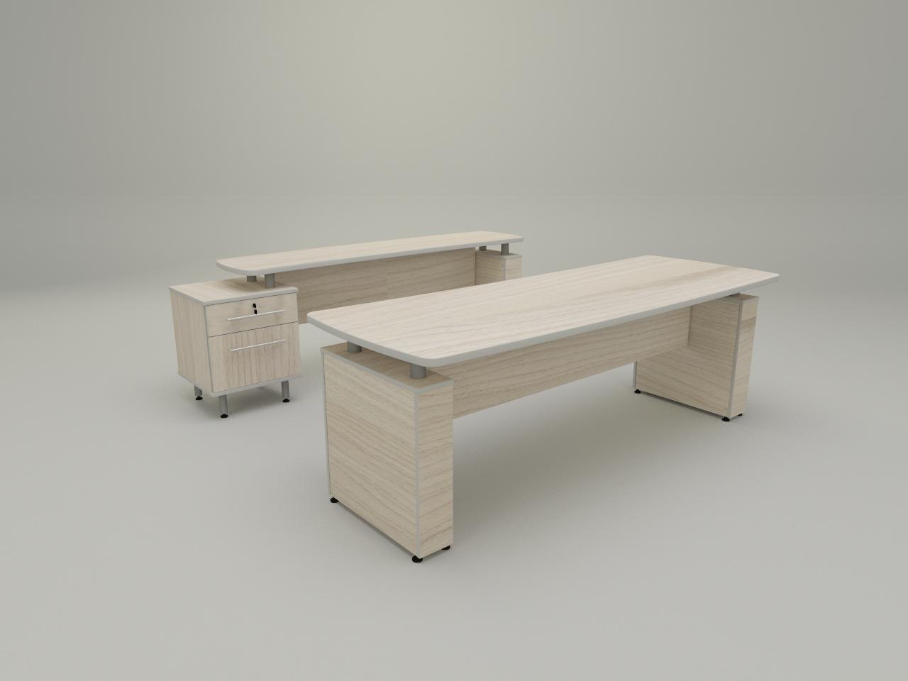 cuenta con escritorio ejecutivo con cubierta de 28 mm de espesor con corte de diseño de 220 x 80 cm, 2 soportes tipo boston de 150 mm, cada uno armado con cubiertas de 16 mm de espesor, 2 soportes de tubo redondo de 2 plg cal 18 atornillable y con placa de lamina de acero cal 14 para fijacion a cubierta, con acabado en pintura al horno. faldon central de 19 mm de espesor. todo fabricado en madera industrializada melaminizada por termofusion y cantos vinilizados de pvc. credenza con cubierta de 28 mm de espesor con diseño de corte, soporte tipo boston de 150 mm armado con cubiertas de 16 mm de espesor, 2 soportes de tubo redondo de 2 plg cal 18 atornillable y con placa de lamina de acero cal 14 para fijacion a cubierta, con acabado en pintura al horno. faldon central de 19 mm de espesor. todo fabricado en madera industrializada melaminizada por termofusion y cantos vinilizados de pvc. incluye cajonera con cajon archivador tamaño oficio con sistema de archivo suspendido y cajon utilero status con correderas de extension completa, jaladeras mod tiger de 30 cm y cerradura frontal con mecanismo de cierre simultaneo. cuenta con 2 soportes de tubo tubo redondo de 2 plg cal 18 atornillable y con placa de lamina de acero cal 14 para fijacion a cubierta, con acabado en pintura al horno.