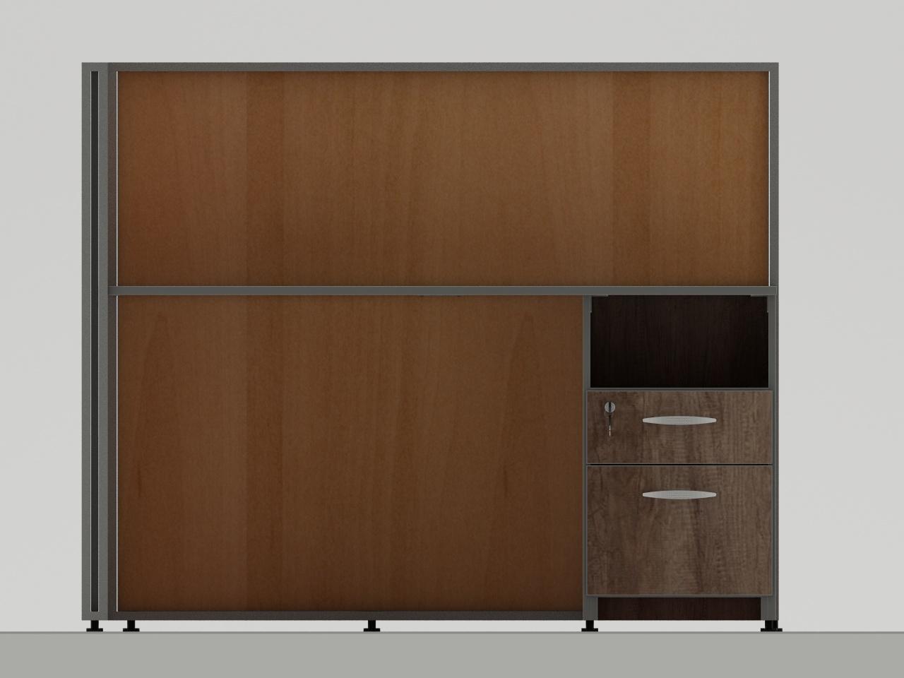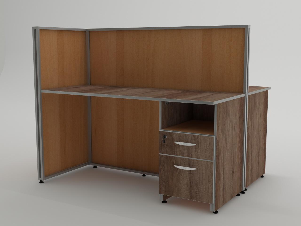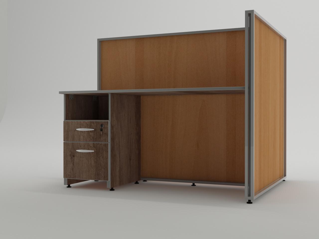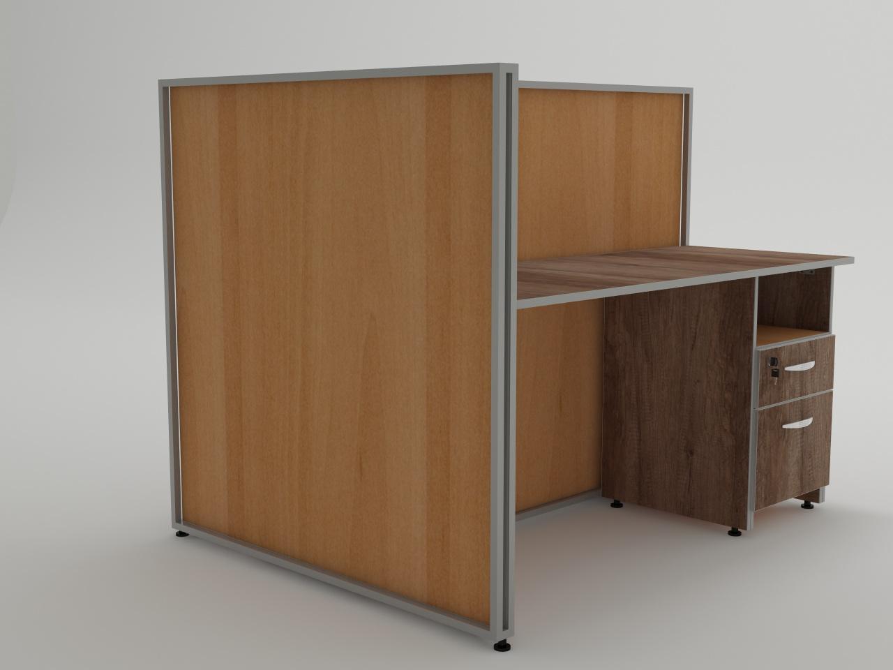 fabricado con estructura metalica de tubo cuadrado de 3/4 plg cal. 18 para formar una t, con espacio para colocar panel al interior de la estructura, cuenta con 6 placas de acero para fijar cubiertas. cuenta con nivealdores para ajuste de altura. con acabado en pintura al horno. cuenta con 2 divisiones al interior de la estructura de panel de 16 mm de espesor, 2 cubiertas de 19 mm de espesor y 2 pedestales de 1 gaveta utilera y 1 gaveta archivadora todo en panel de 16 mm de espesor, jaladera mod. herradura y cerraduras. todo elaborado en madera industrializada melaminizada por termofusion y cantos vinilizados.