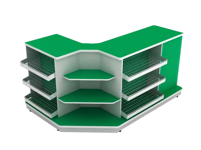 ideal para tiendas de conveniencia y en centros comerciales con dimensiones generales: altura h95 cm, ancho 121 cm y largo 185 cm. cubierta principal operativa e inferior en 28mm de espesor con curvas especiales para exhibicion. entrepaños y soportes interiores en 16mm de espesor. 1 cajon utilero con corredera de extension completa, jaladera cerrajes y cerradura frontal. zoclo melaminico en 28mm con niveladores para regular altura. todo en madera industrializada, melaminizada y vinilizada en los cantos por termofusion con pvc vinilico. consta de 6 canastas exhibidoras fabricadas en alambre trefilado solido de 1/4 plg y 3/16 plg adosados a mensula en lamina cal. 14 y cremallera en lamina cal. 14, todas las partes metalicas armadas con soldadura de microalambre y acabados con pintura epoxi polyester al horno, previa limpieza, proceso de fosfatizacion y sellado organico anticorrosivo.