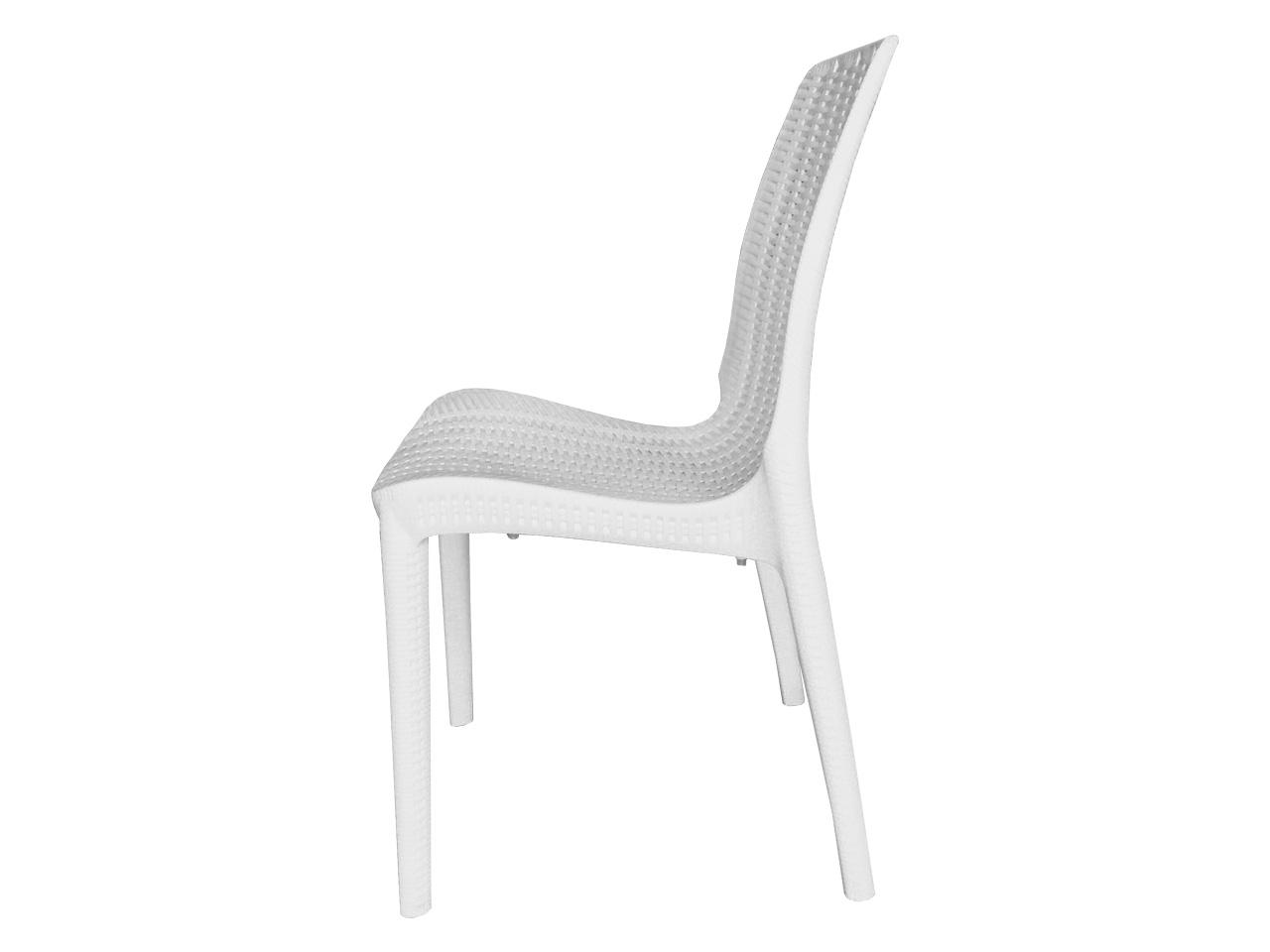 respaldo, asiento y patas en copolimero de polipropileno de una sola pieza, diseño ergonomico, resistente a los rayos uv, terminado imitacion mimbre.