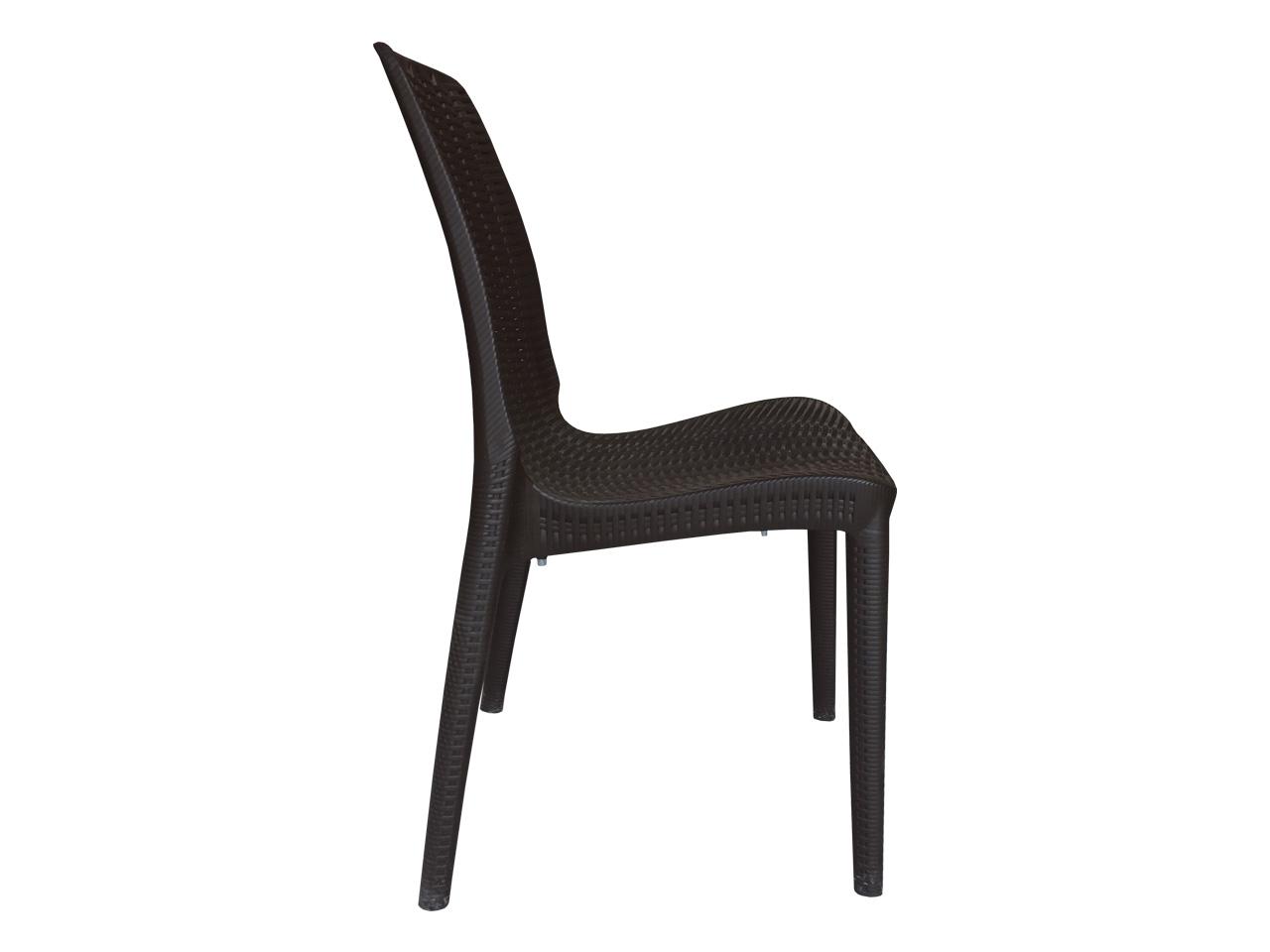 respaldo, asiento y patas en copolimero de polipropileno de una sola pieza, diseño ergonomico, resistente a los rayos uv, terminado imitacion mimbre.