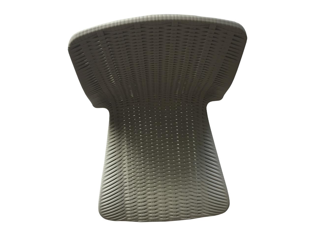 respaldo, asiento y patas en copolimero de polipropileno de una sola pieza, diseño ergonomico, resistente a los rayos uv, terminado imitacion mimbre.