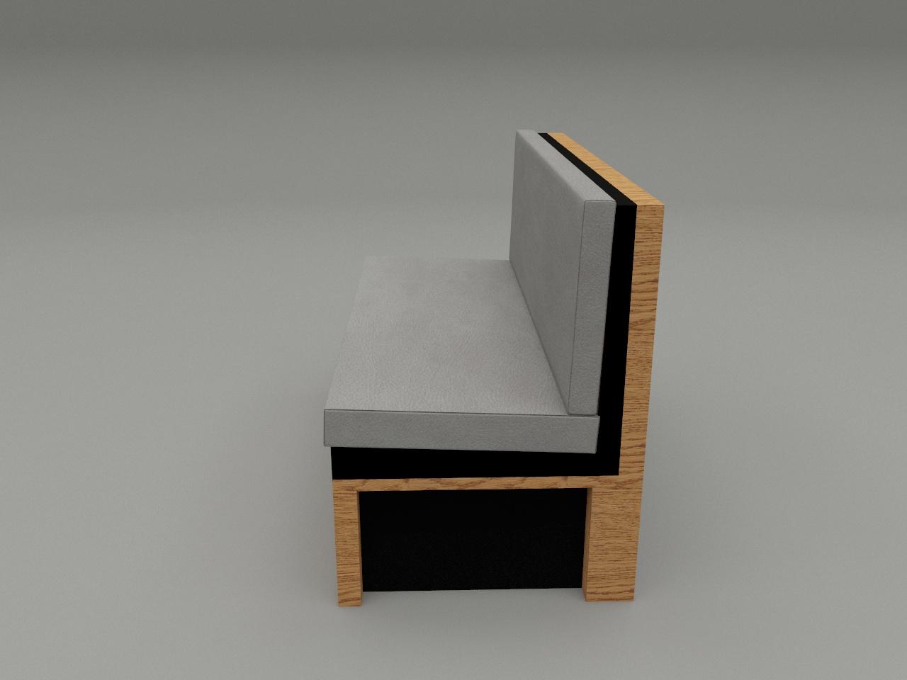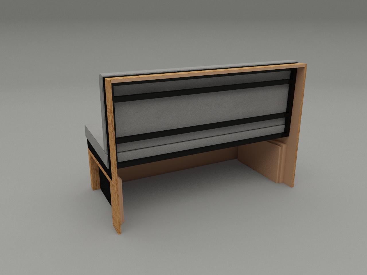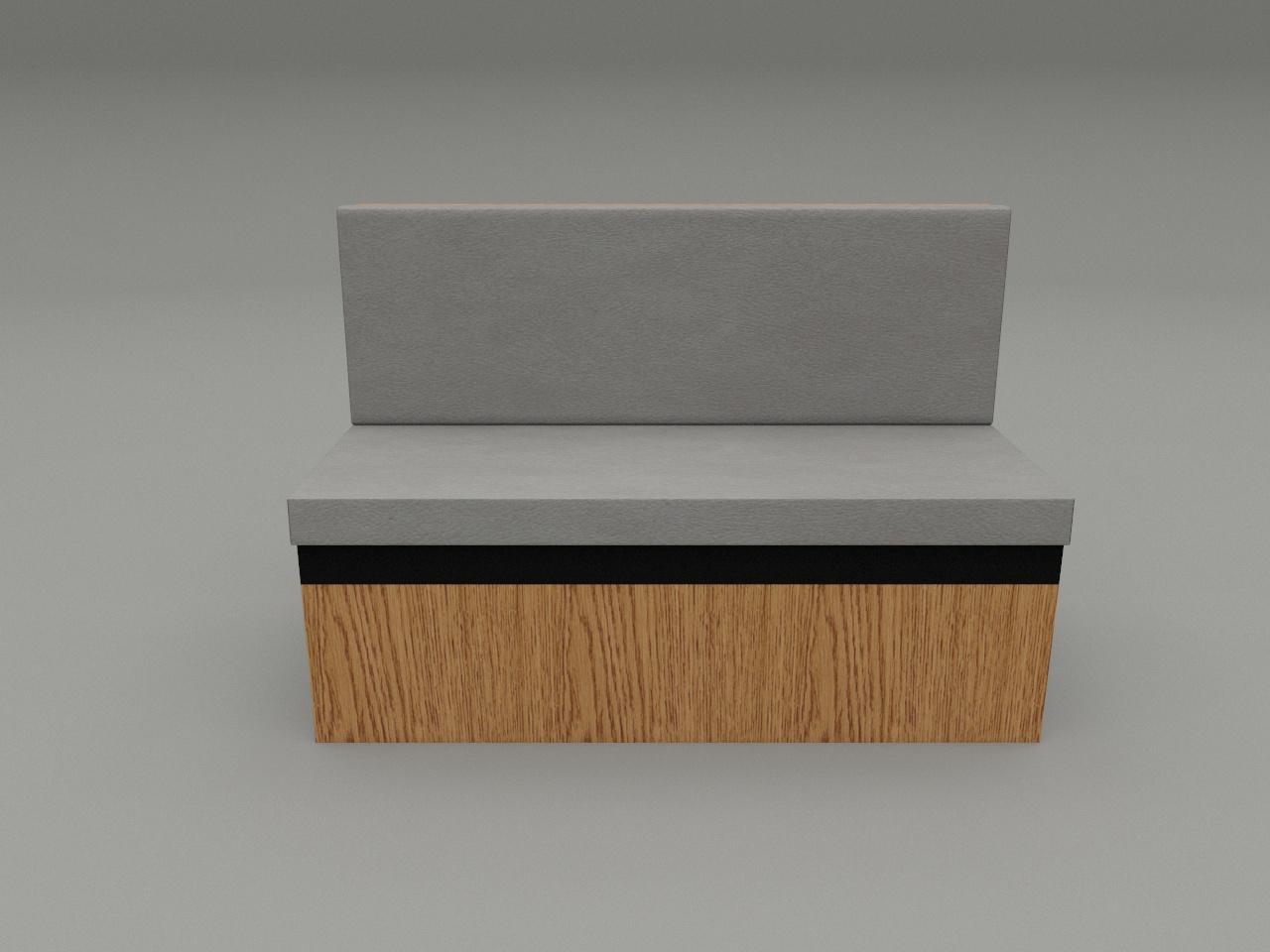 se compone de base principal, que es fijada a estructura previamente instalada, elaborada con tableros de mdf de 16 mm de espesor, forrados en laminado plastico de alta resistencia, con refuerzos interiores para mayor resistencia. cuenta con un marco interior de tubo cuadrado de 1 plg cal. 18 con acabado en pintura al horno, decoracion de laminado en un solo plano.asiento y respaldo, cada uno con base de triplay de 18 mm de espesor, con hule espuma de 5 cm de densidad para acojinamineto tapizado en vinil simil cuero con un espesor de gauges 38-42; peso gr/m2 650 - 10%; en color gris claro.