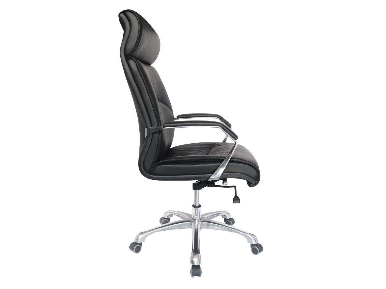 base de 26 plg de fundicion en aluminio nervado con rodajas de 50 mm de diametro en sambladas a presion, color negro piston neumatico de gas nitrogeno, ensamble conico a presion en la base del asiento y en la base del sillon, mecanismo en acero tipo artuculado de rodilla, con palanca de accionamiento y bloqueo del piston neumatico reclinable con regulador de tension de la inclinacion y palanca de bloqueo. respaldo alto, brazos de aluminio fundido y pulidos con terminado natural, acojinados y tapizados en soft revolving leather color negro. asiento respaldo de mader de triplay preformado de 8mm, asiento acojinado con hule espuma laminada y dimensionada de 70 mm de espesor de alta densidad 50 kg/m3. respaldo acojinado con hule espuma laminada y dimensionada de 80 mm de espesor de alta densidad. tapizado en soft revolving leather color negro.