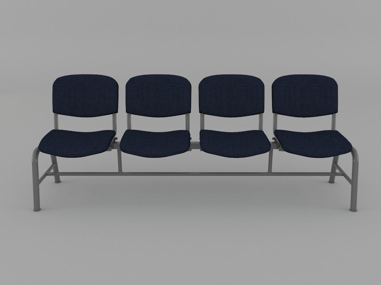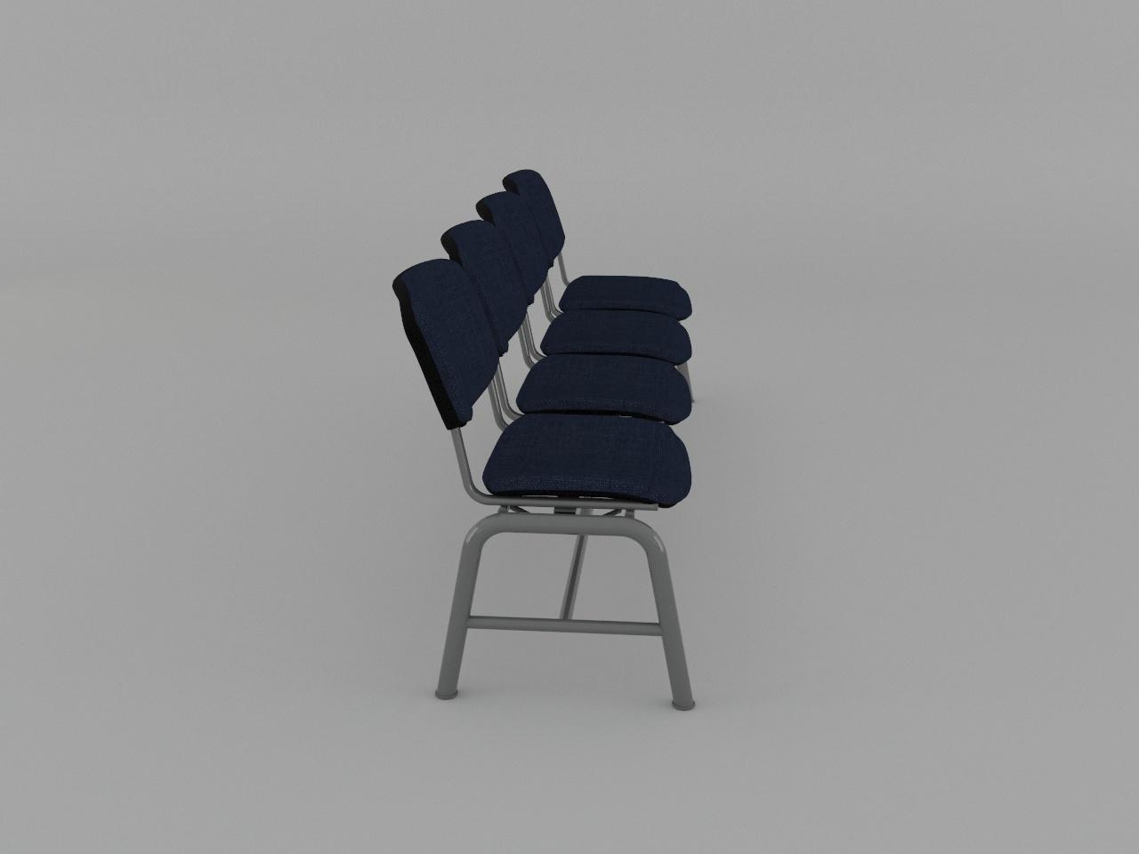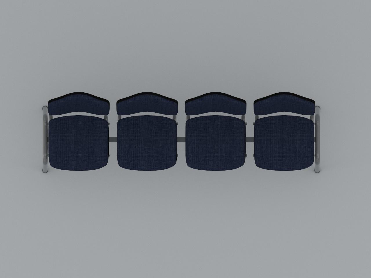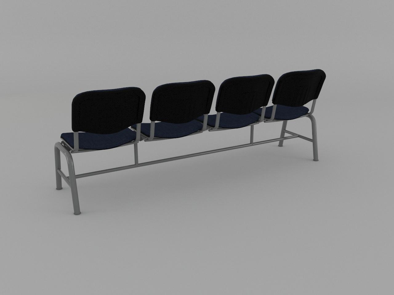 estructura metalica base en acero tubular redondo de 1 1/2 plg cal 18 con rolado y doblez, refuerzo en travesaño larguero de tubo cuadrado reforzado de 2 plg cal 14, travesaño inferior de tubo redondo de 1 plg cal 18, asiento y respaldo de base metalica de tubular ovalado de 1 1/8 plg x 5/8 plg cal 18, soldados con microalambre y acabado en pintura al horno. 4 juegos de asiento y respaldo de polipropileno en color negro, acojinados con hule espuma con densidad de 44 kg/m3, tapizado en tela 100% fibra acrilica.