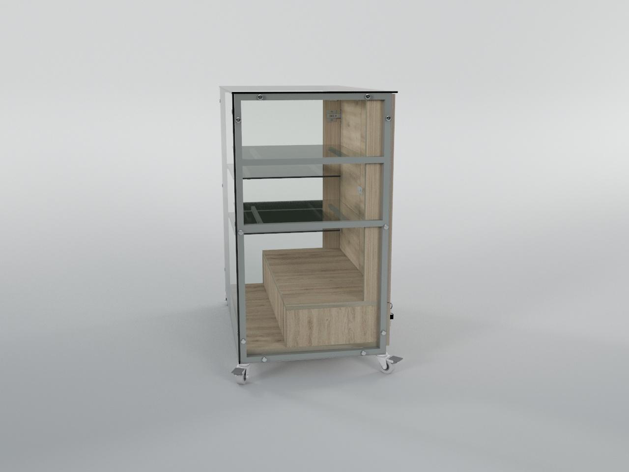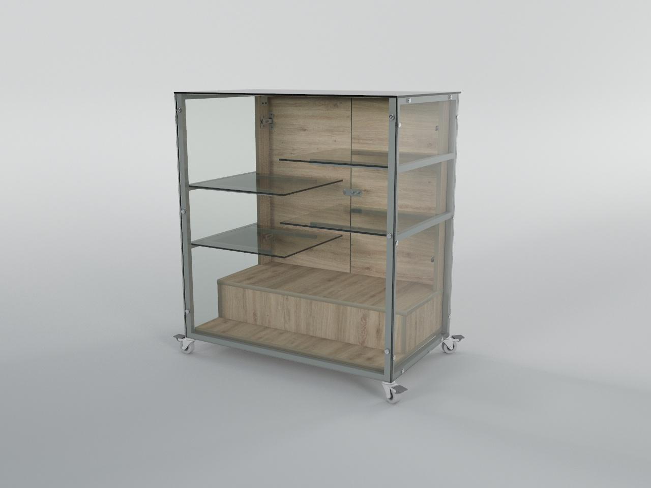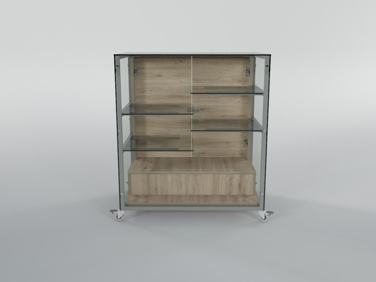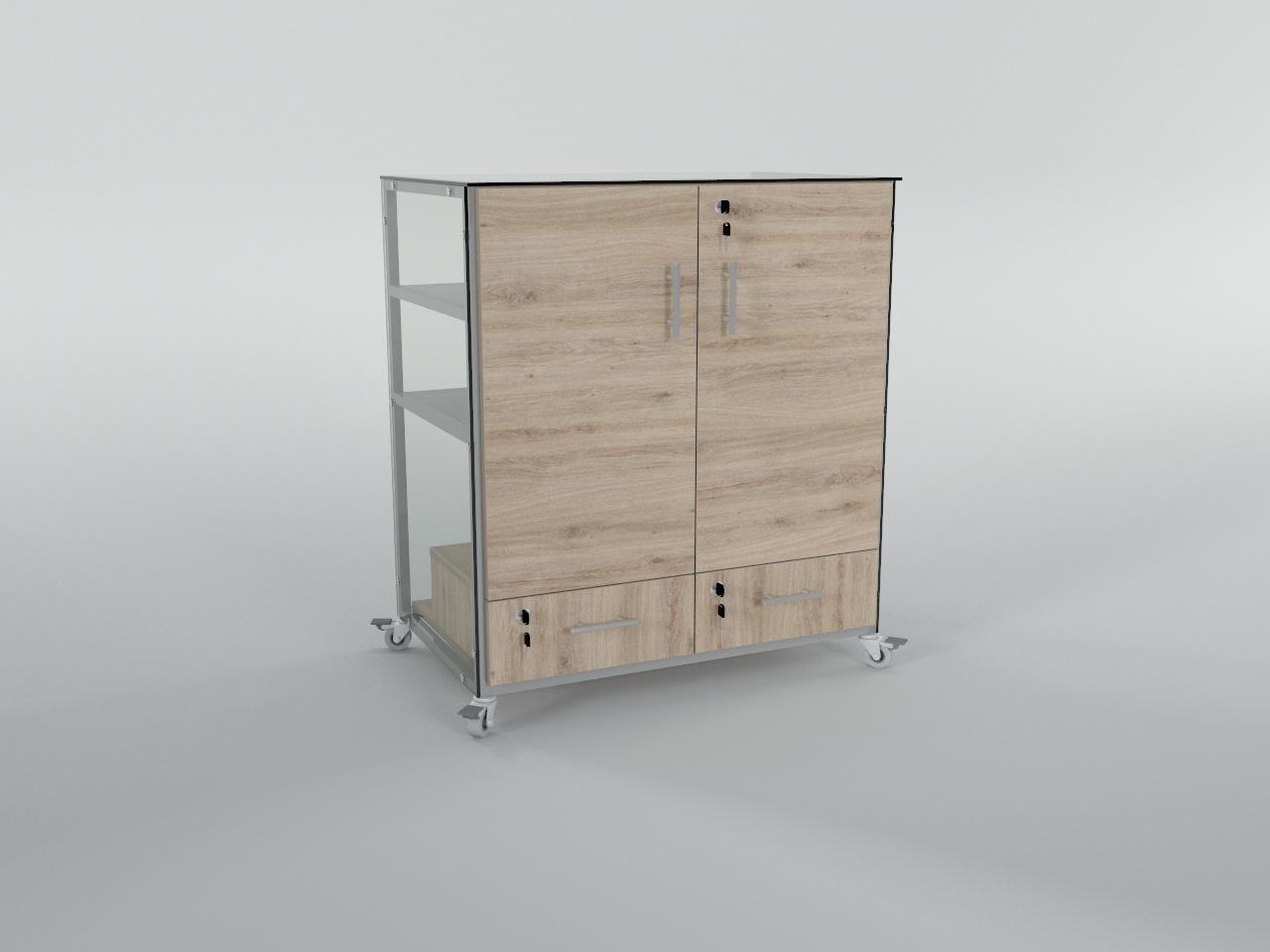 vitrina exhibidora con ruedas h91 80 x 50 cm con 2 puertas y 2 gavetas