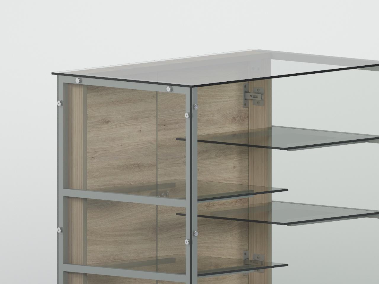 fabricada con estructura metalica de tubular cuadrado de 3/4 plg y refuerzos de cristal de cuadrado de 1/2 plg cal 18, con 4 rodajas con frenos, todo con acabado en pintura al horno. cuenta con cubierta, costados, faldon frontal y 4 entrepaños fijos de cristal claro de 6 mm de espesor con cantos pulidos. base infererior en panel de 16 mm de espesor con 2 gavetas utileras con jaladeras mod tiger de 12 cm, 2 puertas abatibles en 16 mm de espesor con jaladera mod tiger de 12 cm, todo fabricado en madera industrializada melaminizada por termofusion y cantos vinilizados de pvc.